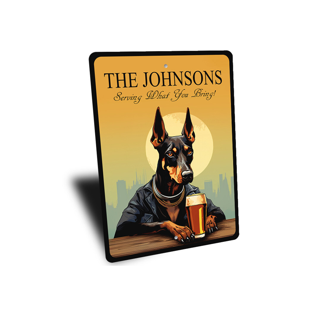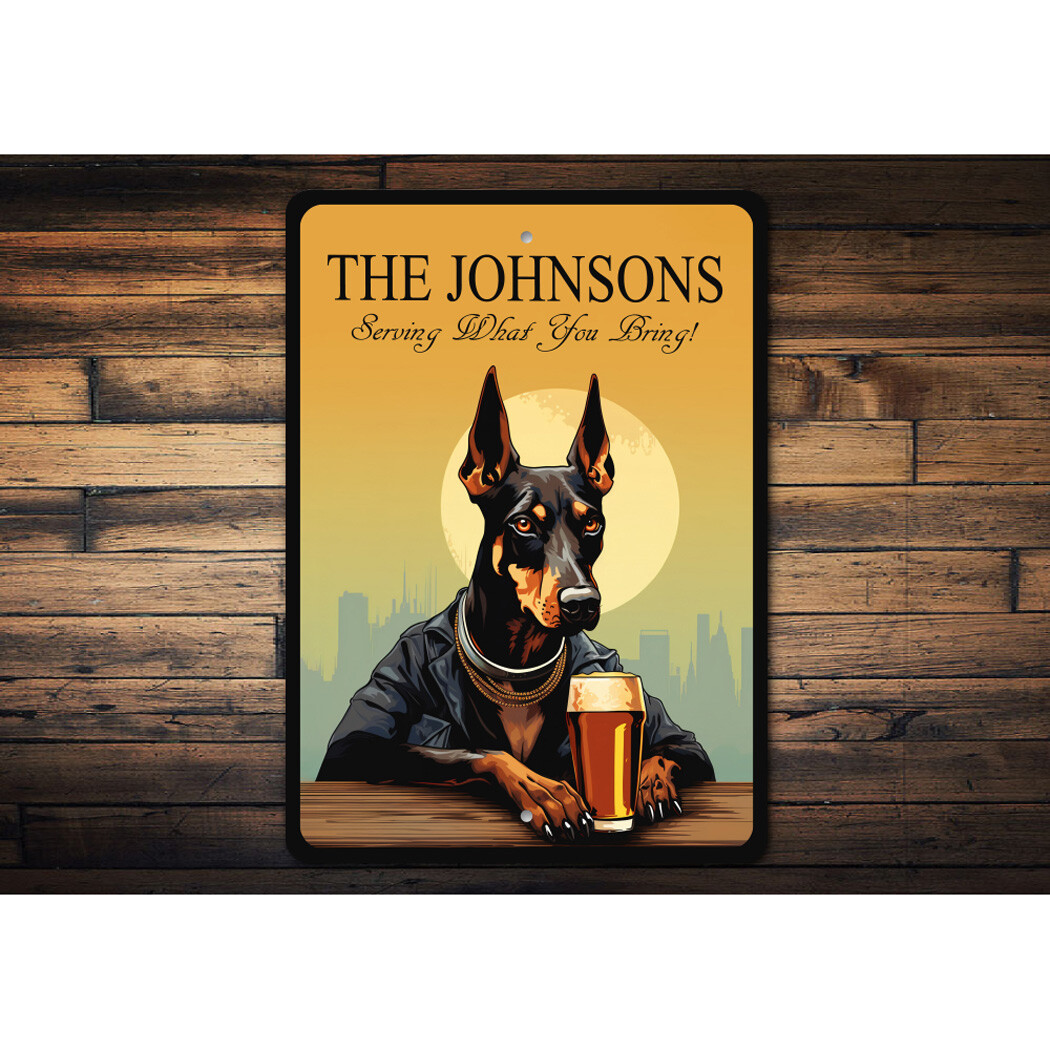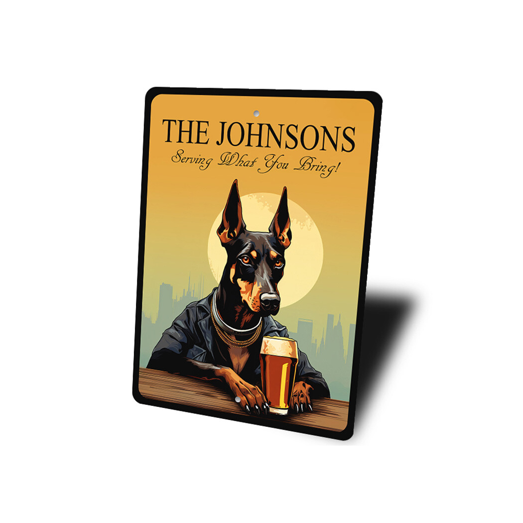 как выглядит Doberman Pinscher Custom Serving What You Bring Sign фото
