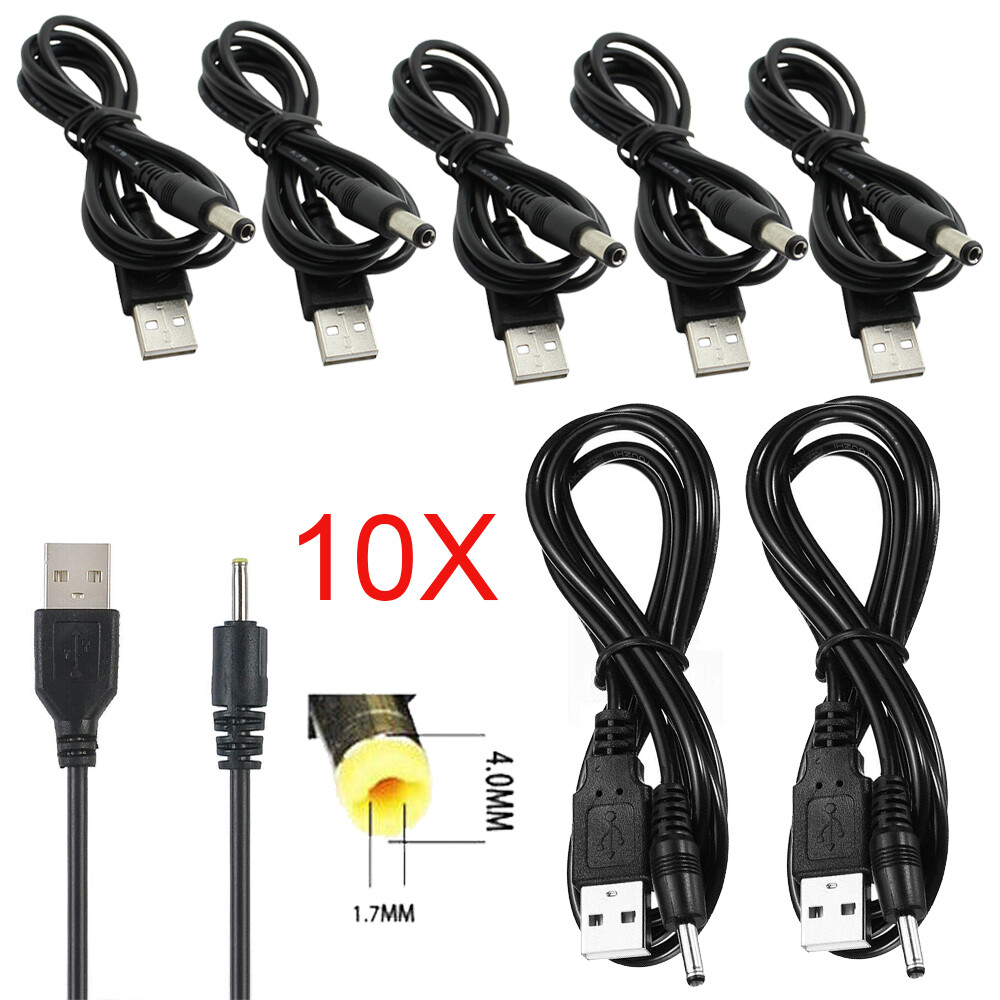 10-Pack 3ft 100cm USB to 4.0mm x 1.7mm Male Coaxial Barrel 5V DC Power Cable US