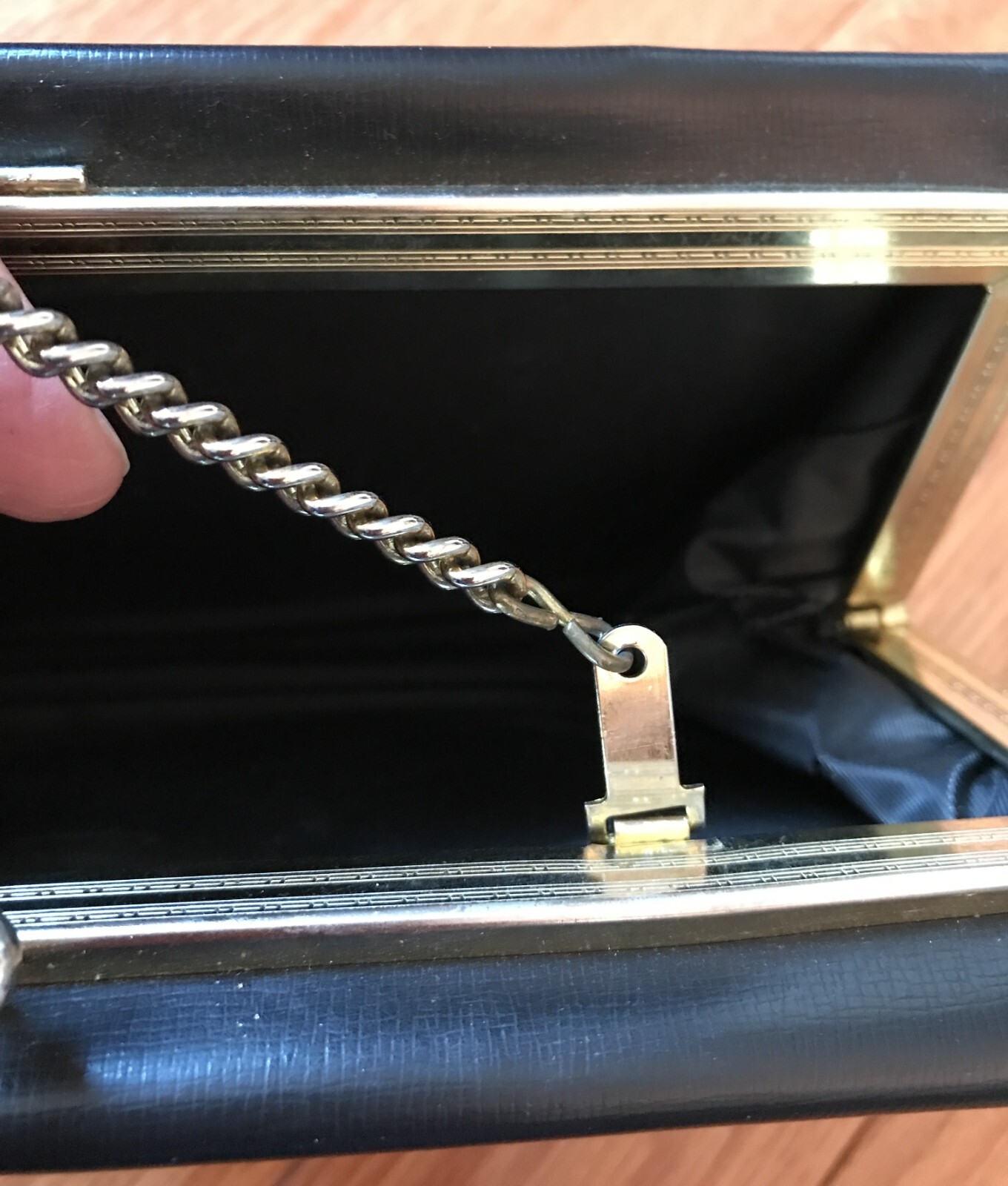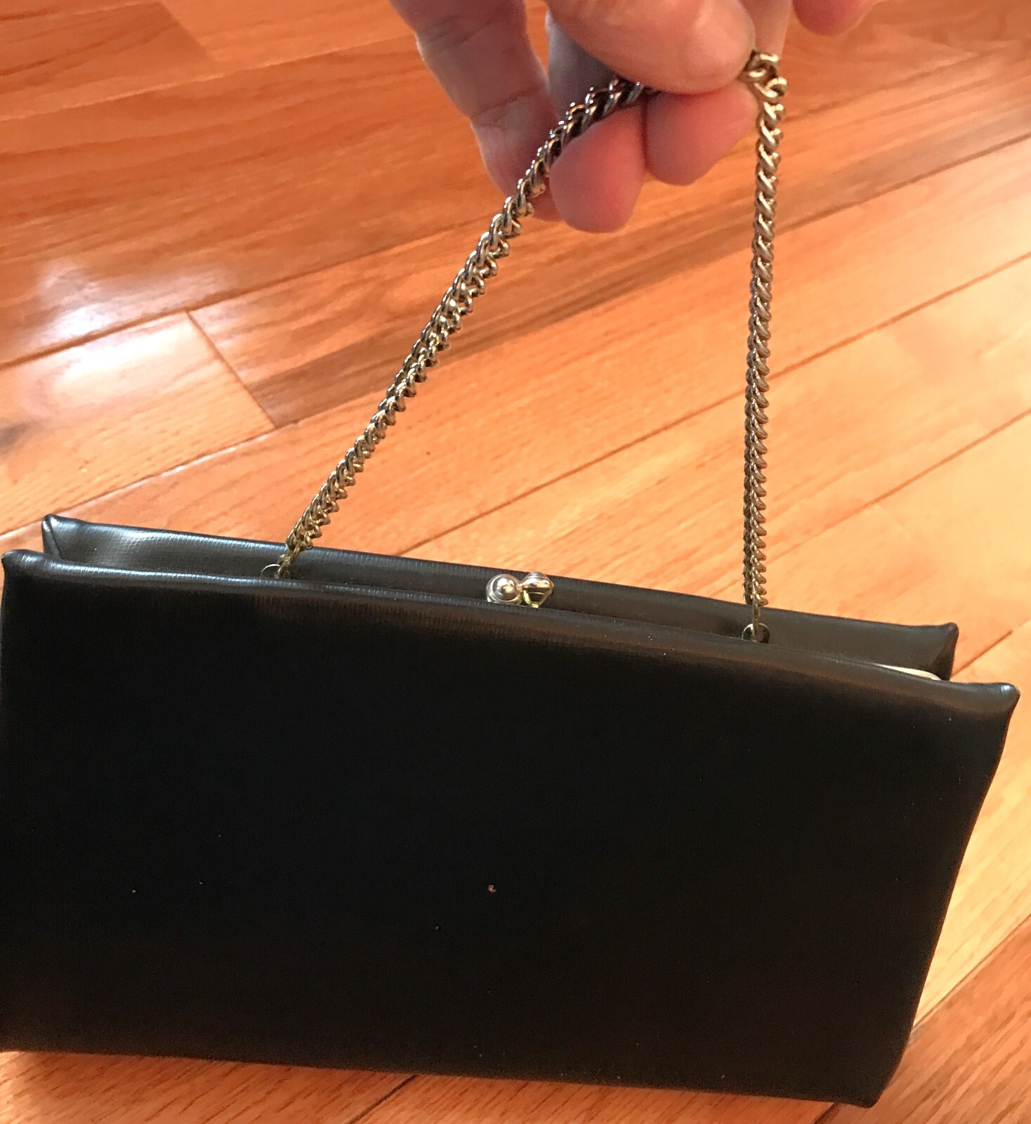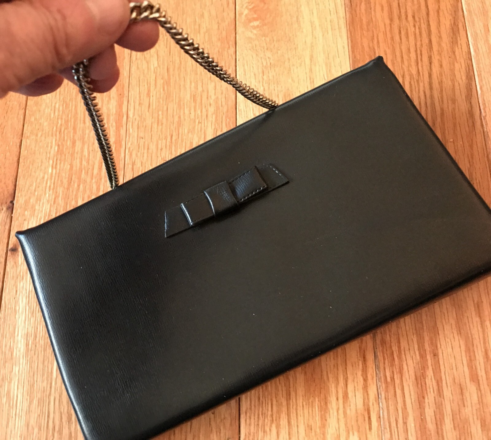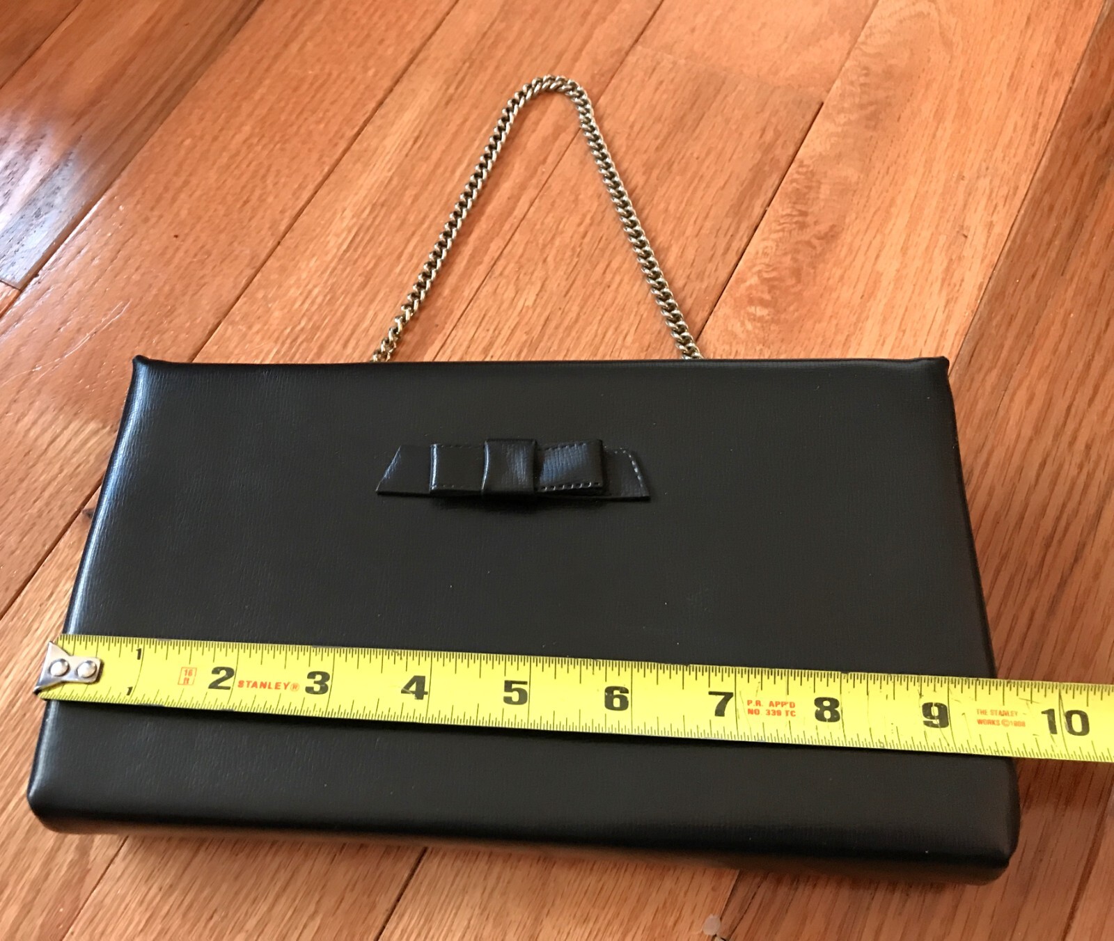 Vintage MCM Women's Black Clutch Purse Bow Faux Leather Optional Chain Handle
