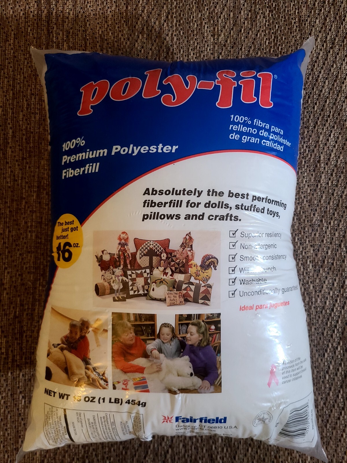 Fairfield Poly-Fil Premium Polyester Fiber Filler White 16oz Toys Pillows Fill