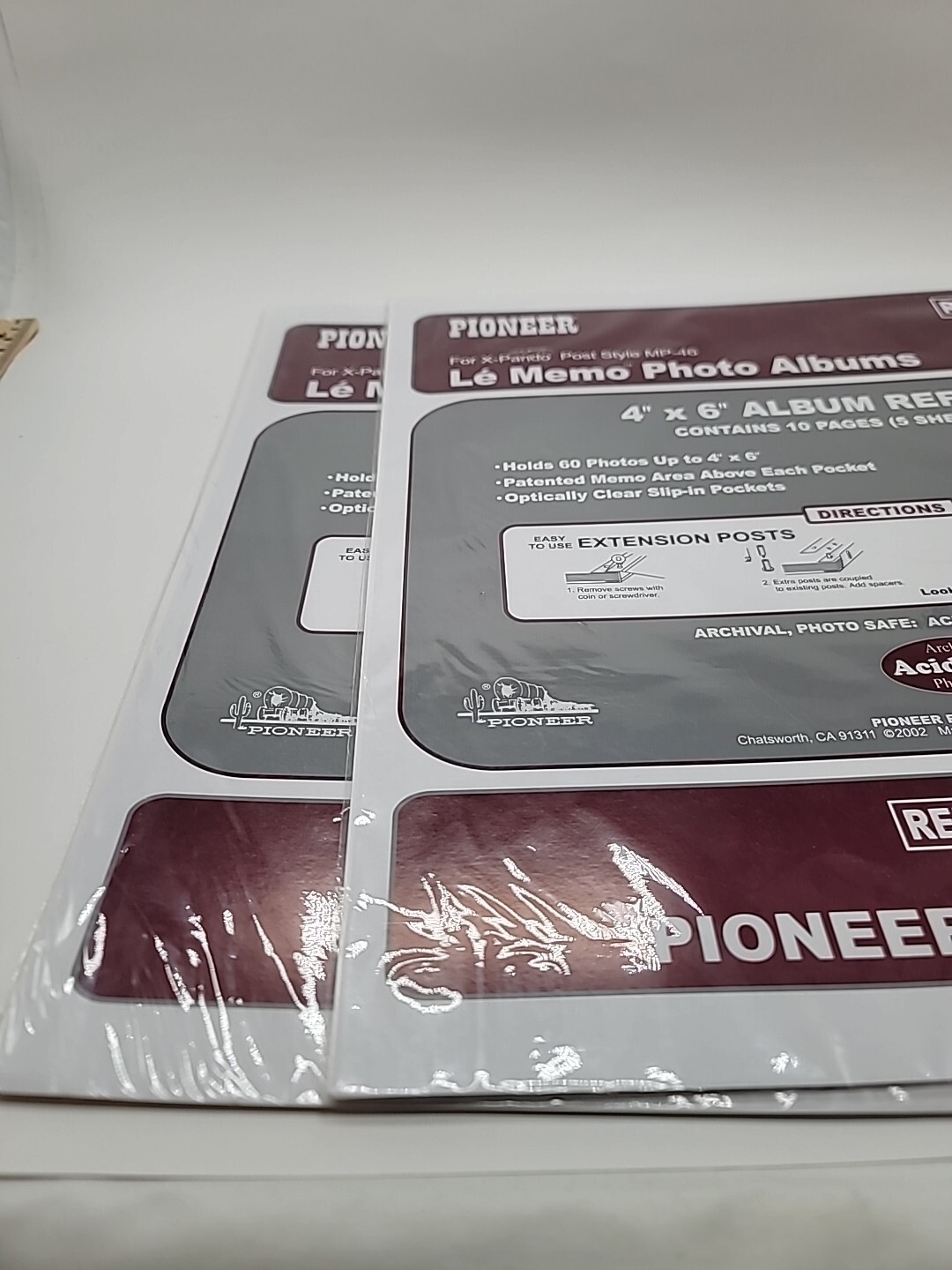 New 2X Pioneer MP-46 Memo Pocket Photo Album 4x6 Album Refills 5 Sheets/pack x2