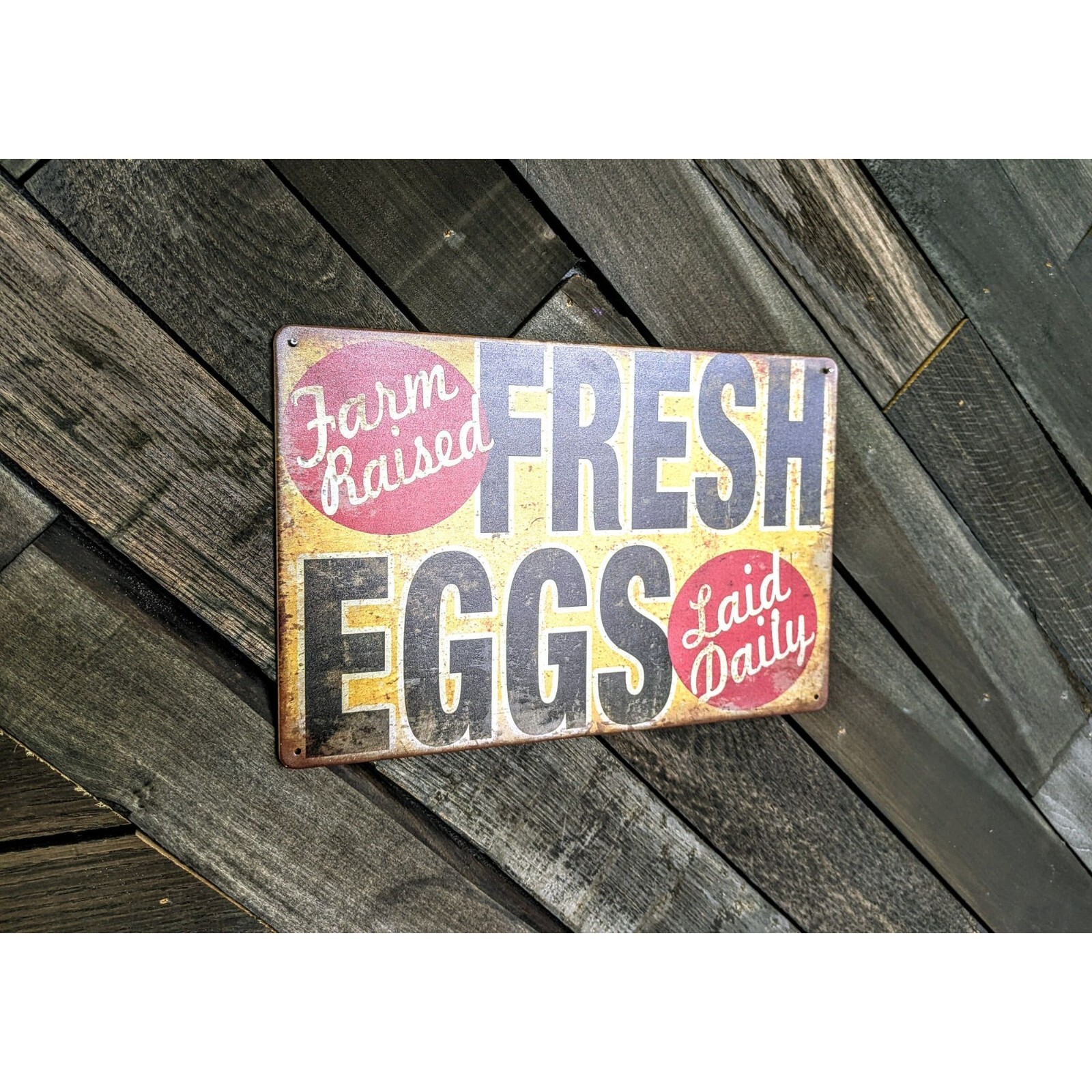 Fresh Eggs Sign - Farm Raised Fresh Eggs Laid Daily - 12in x 8in