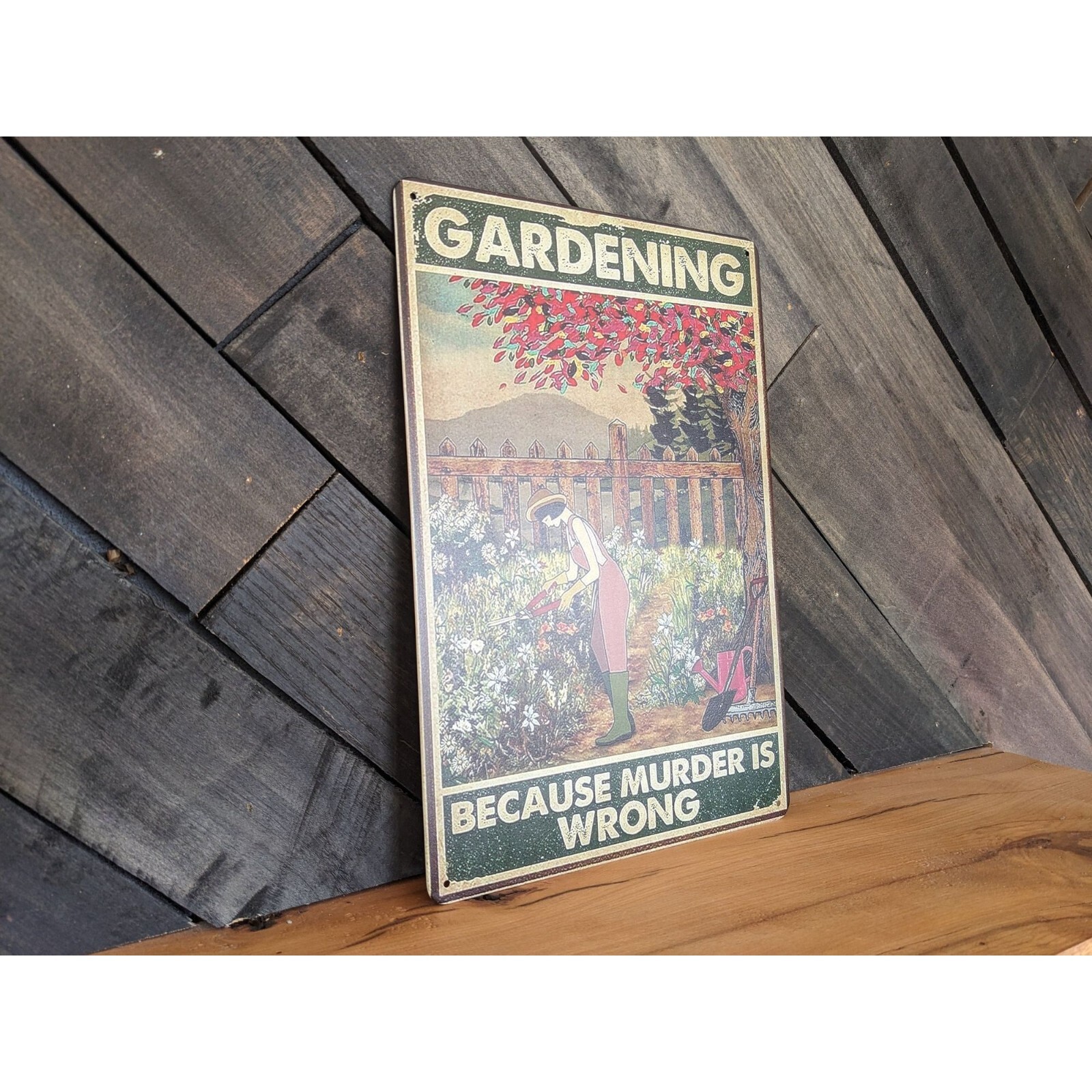 Gardening, Because Murder Is Wrong Sign - Funny Garden Signs - 8in x 12in