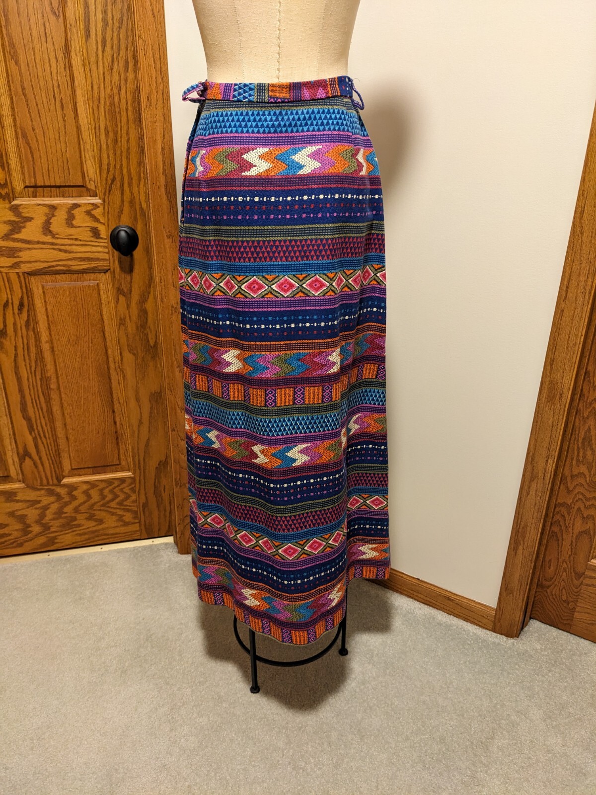 1960-70s maxi skirt vintage patterned vivid bright boho retro