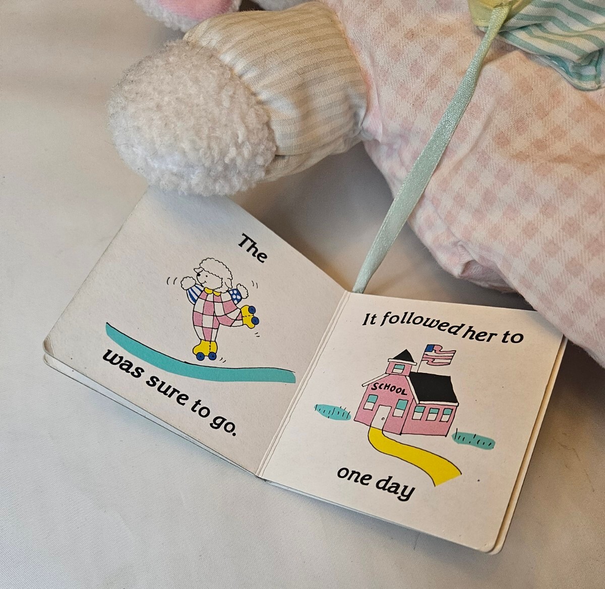 как выглядит Vtg Eden Pastel Lamb Plush Book Stuffed Animal Mary Had A Little Lamb Sheep RARE фото