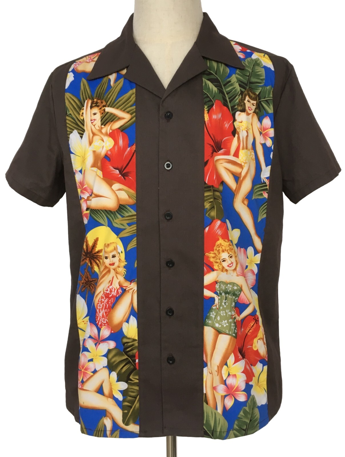 Mens Retro Vintage Bowling Shirts Floral Print Rockabilly Short Sleeves Top