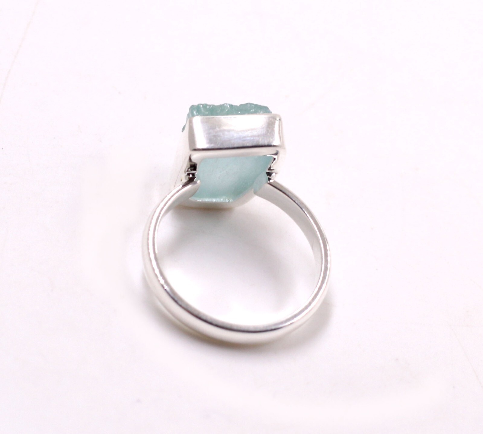 Genuine Rough Aquamarine Gemstone 925 Silver Handmade Ring Thanksgiving Gift