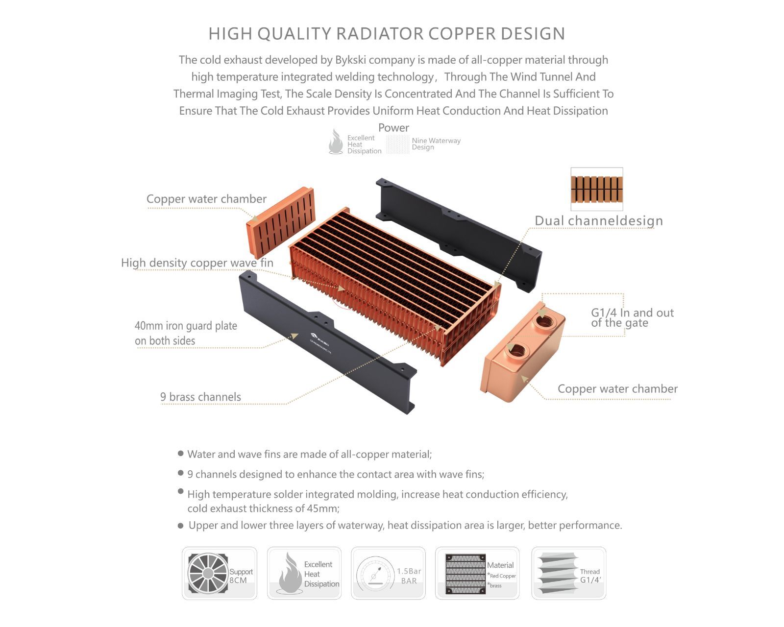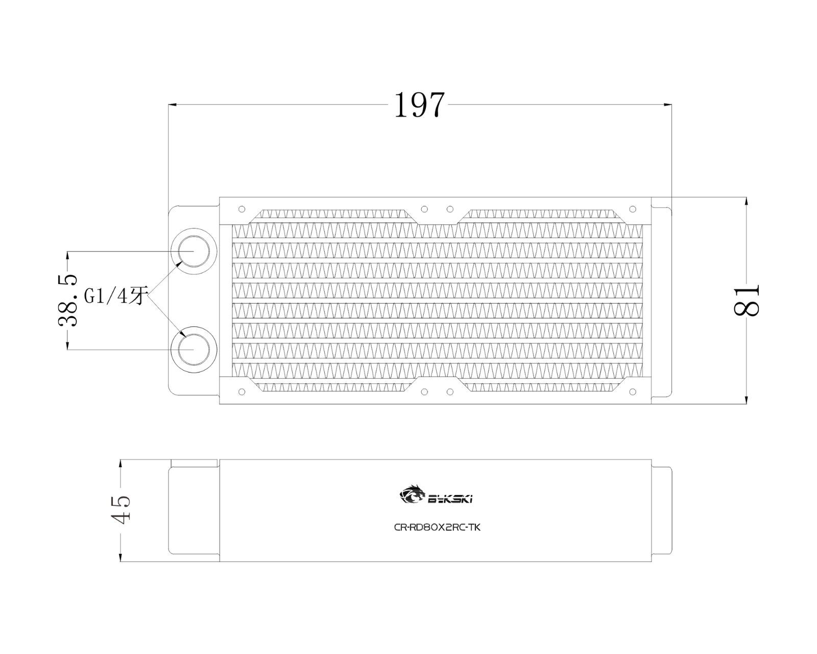 Bykski 80mm x 45mm RC Series Radiator, 80mm x 2, Dual Fan CR-RD80X2RC-TK