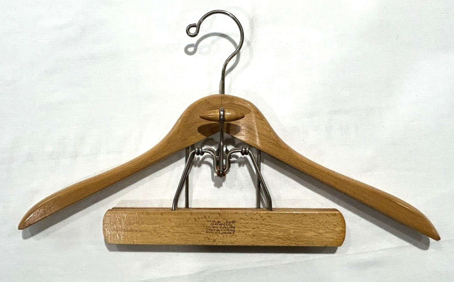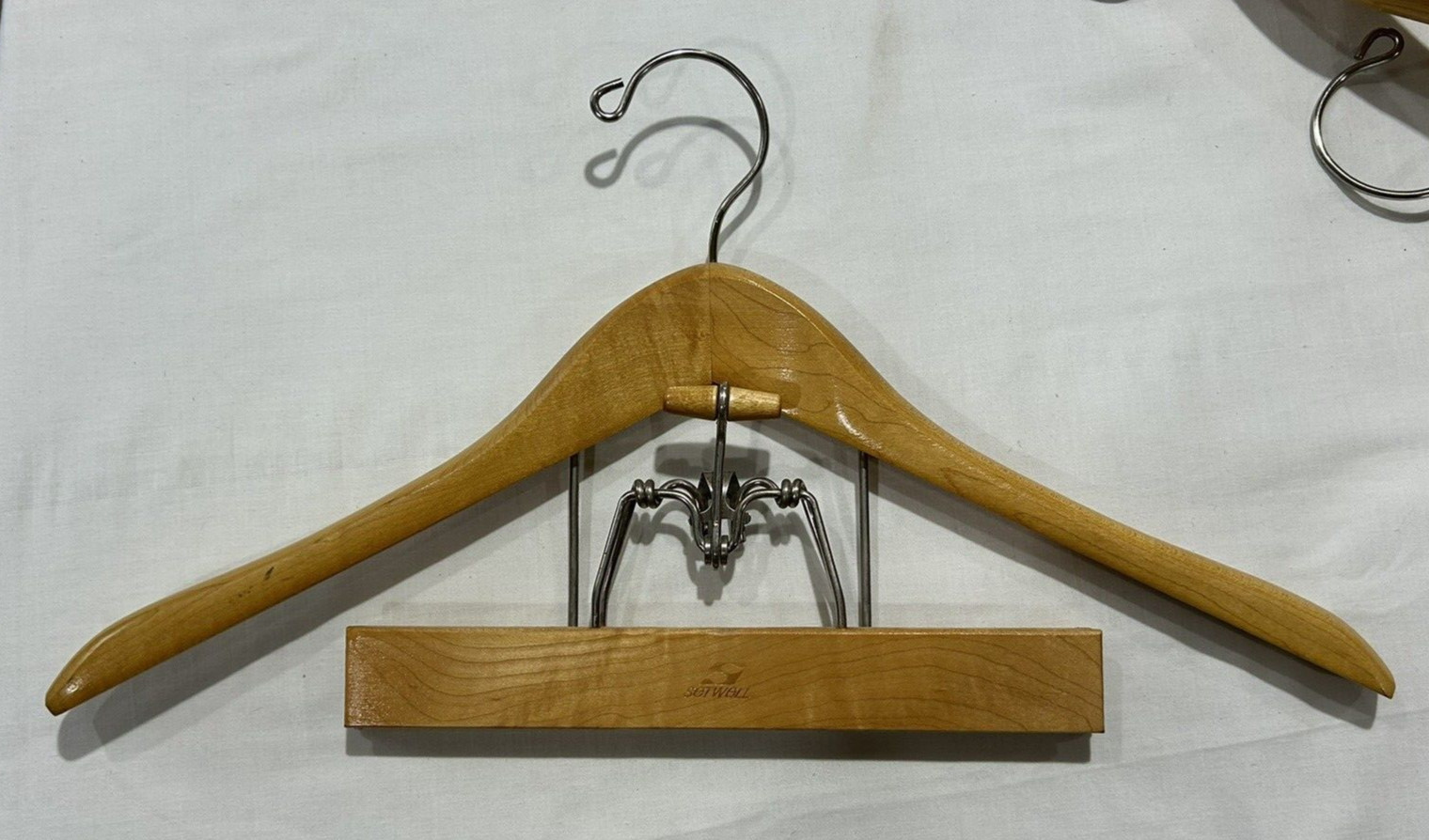 4 Vintage Setwell 18 Wooden Wood Hangers Suit Coat Pants Clamp