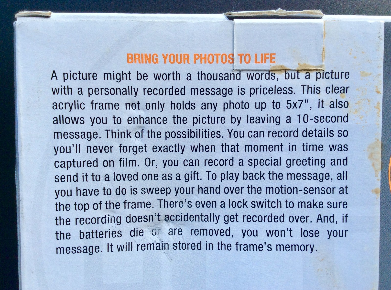 как выглядит Home 5 x 7 Motion Activated Talking Picture Frame, New In Damaged Box фото