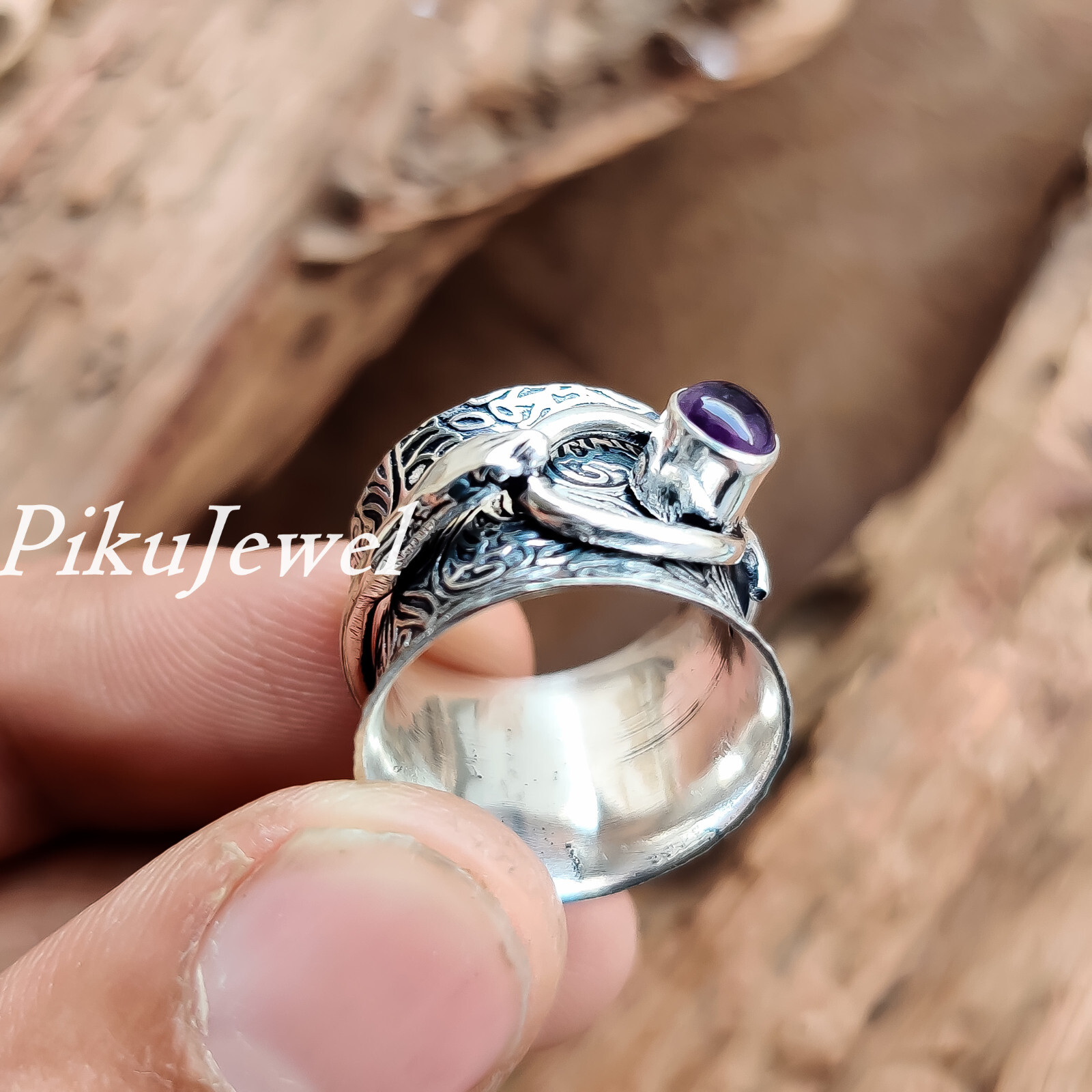как выглядит African Amethyst Gemstone 925 Sterling Silver Spinner Ring Reception Jewelry фото