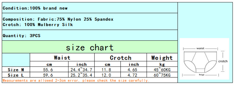 3 Pack Women Briefs Mulberry Silk Crotch Middle Rise Panties Underwear TG226
