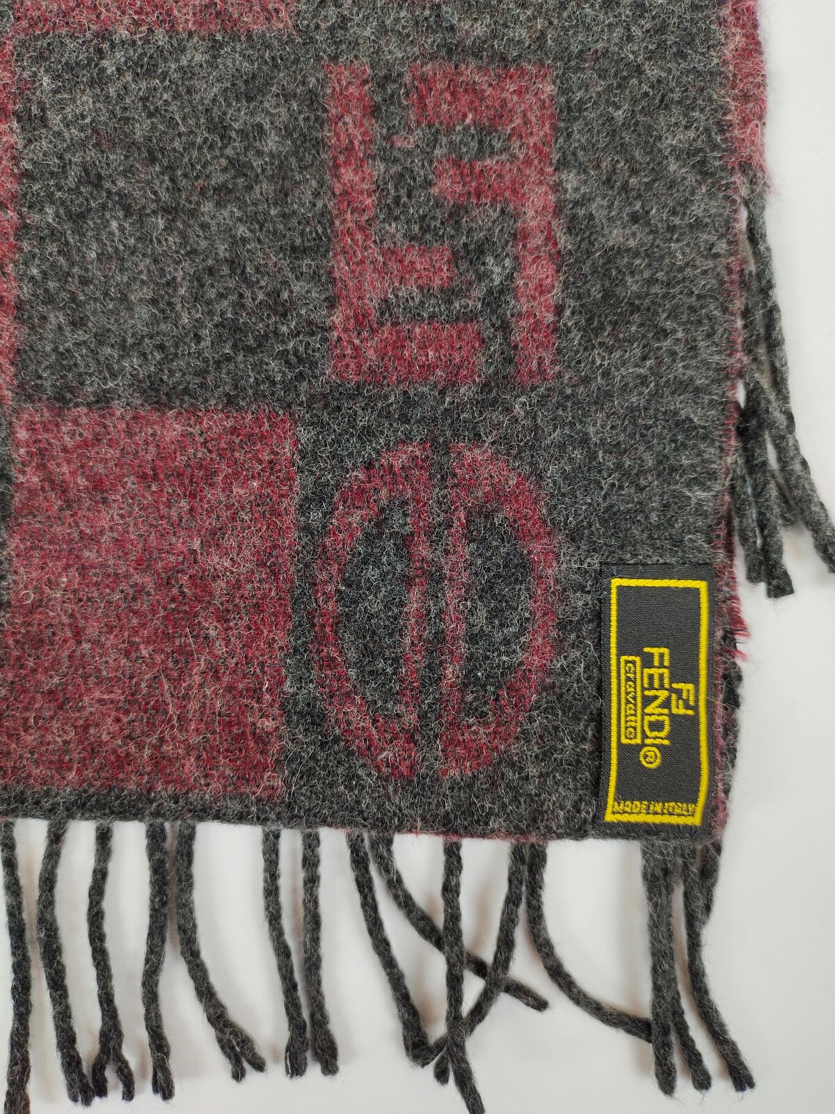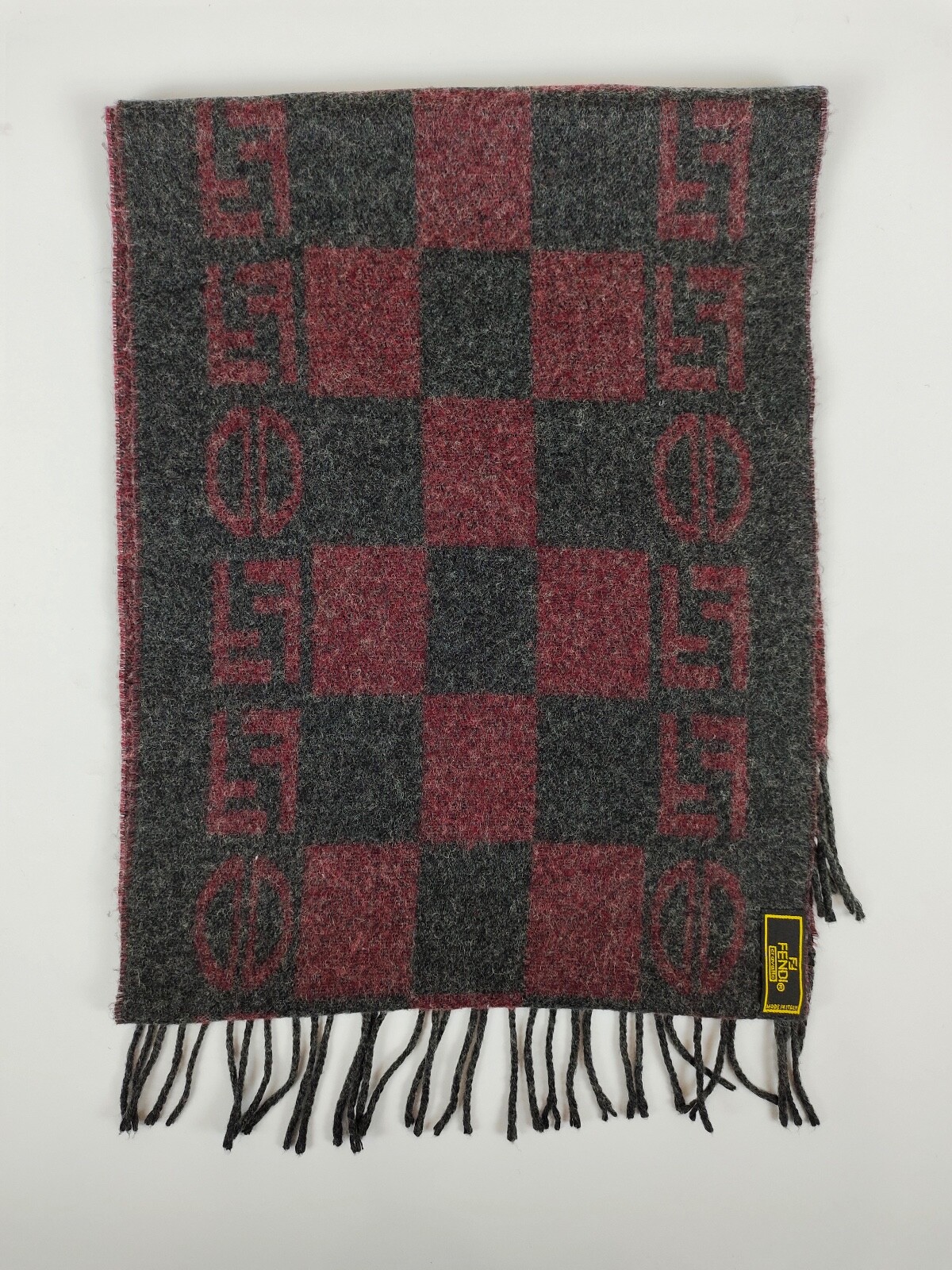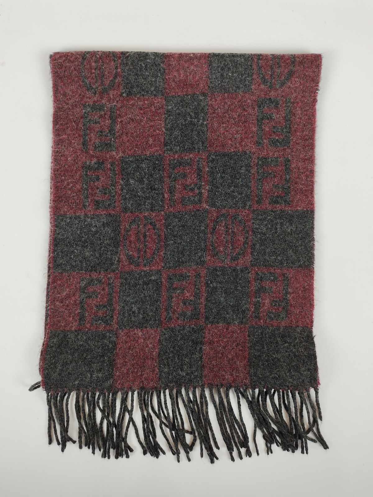 Fendi genuine vintage Maroon / Grey Wool winter Scarf Scarves
