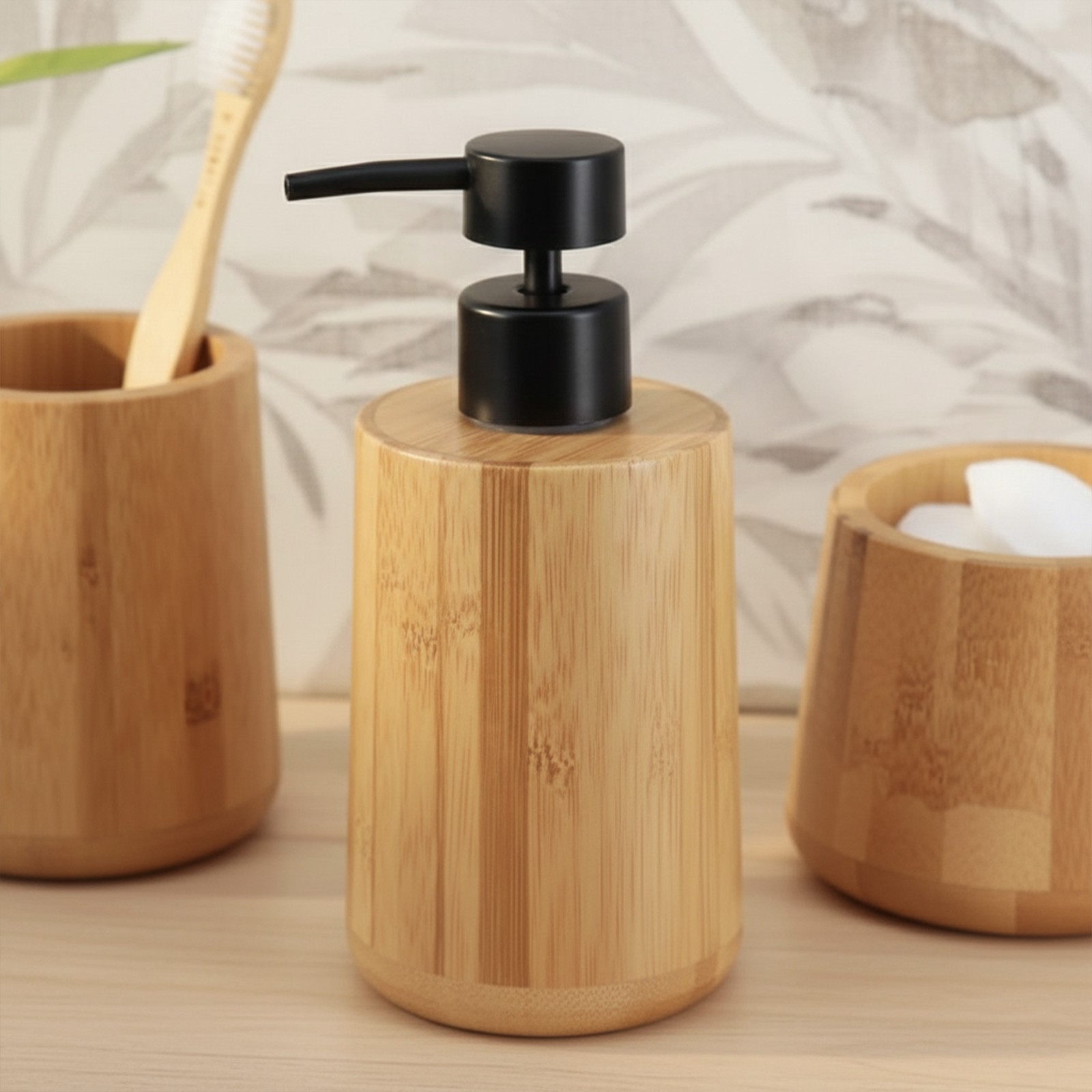 Set Includes: Cotton Ball Holder, Soap Dish, Soap Dispenser, Toilet Brush Holder, Toothbrush Holder
