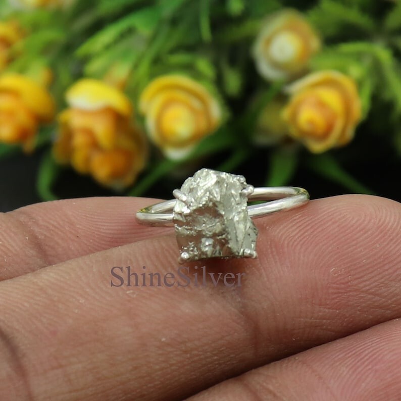 как выглядит Raw Pyrite Ring 925 Sterling Silver Boho Statement Handmade Women Ring фото