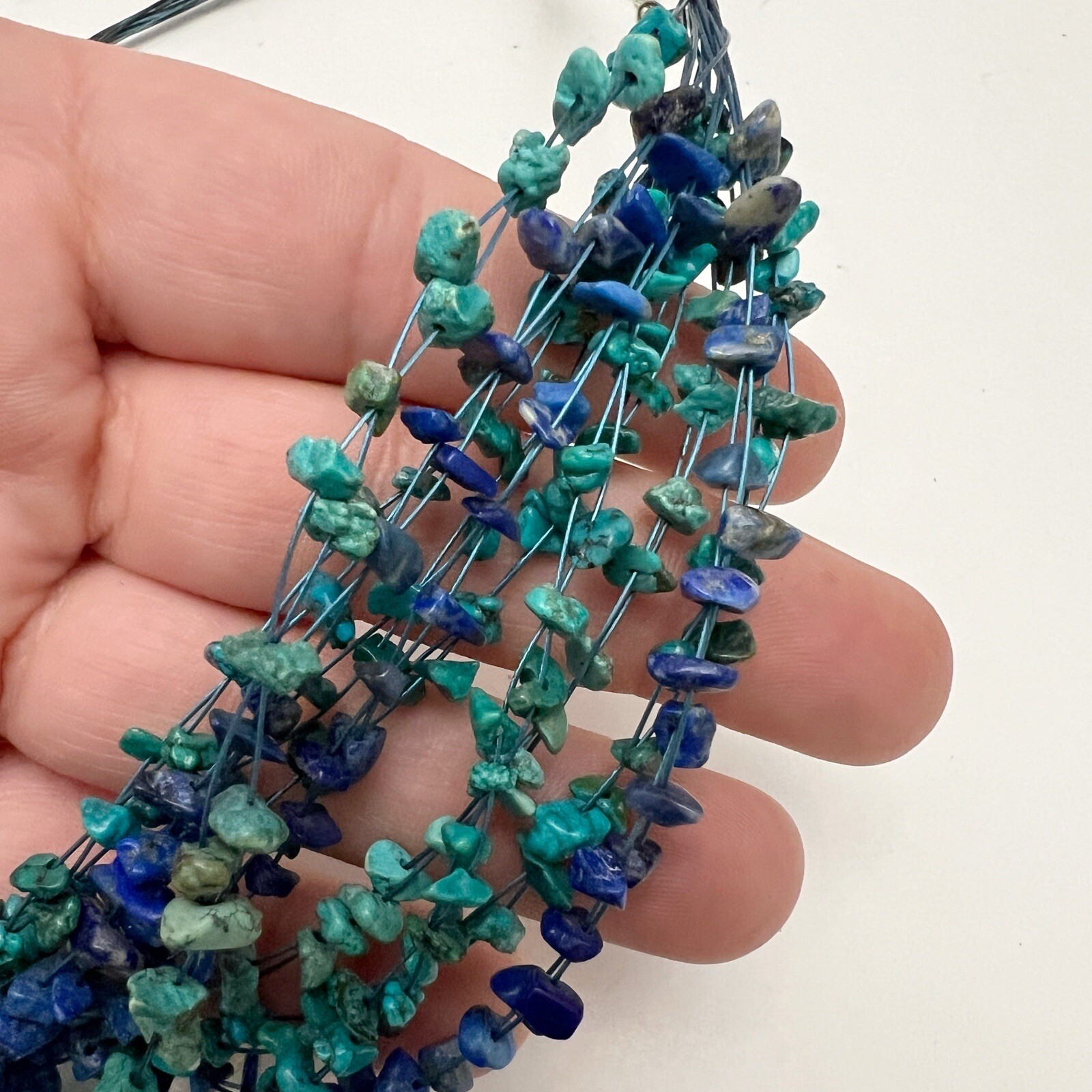 Wire Multi Strand Faux Turquoise Lapis Chip Beaded Necklace