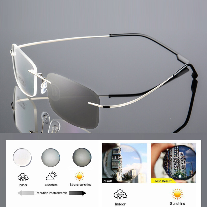 Men Square Rimless Photochromic Gray Presbyopic Glasses UV400 Sunglasses Readers