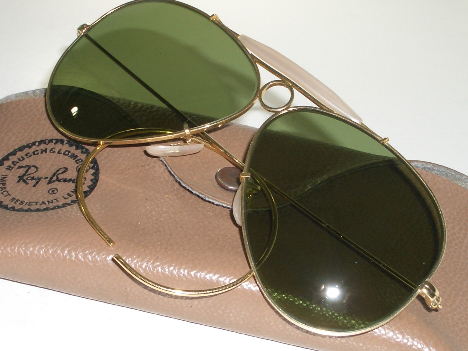 как выглядит VINTAGE BAUSCH LOMB RAY-BAN GEP RB3 TRU-GREEN GLASS SHOOTER AVIATOR SUNGLASSES фото