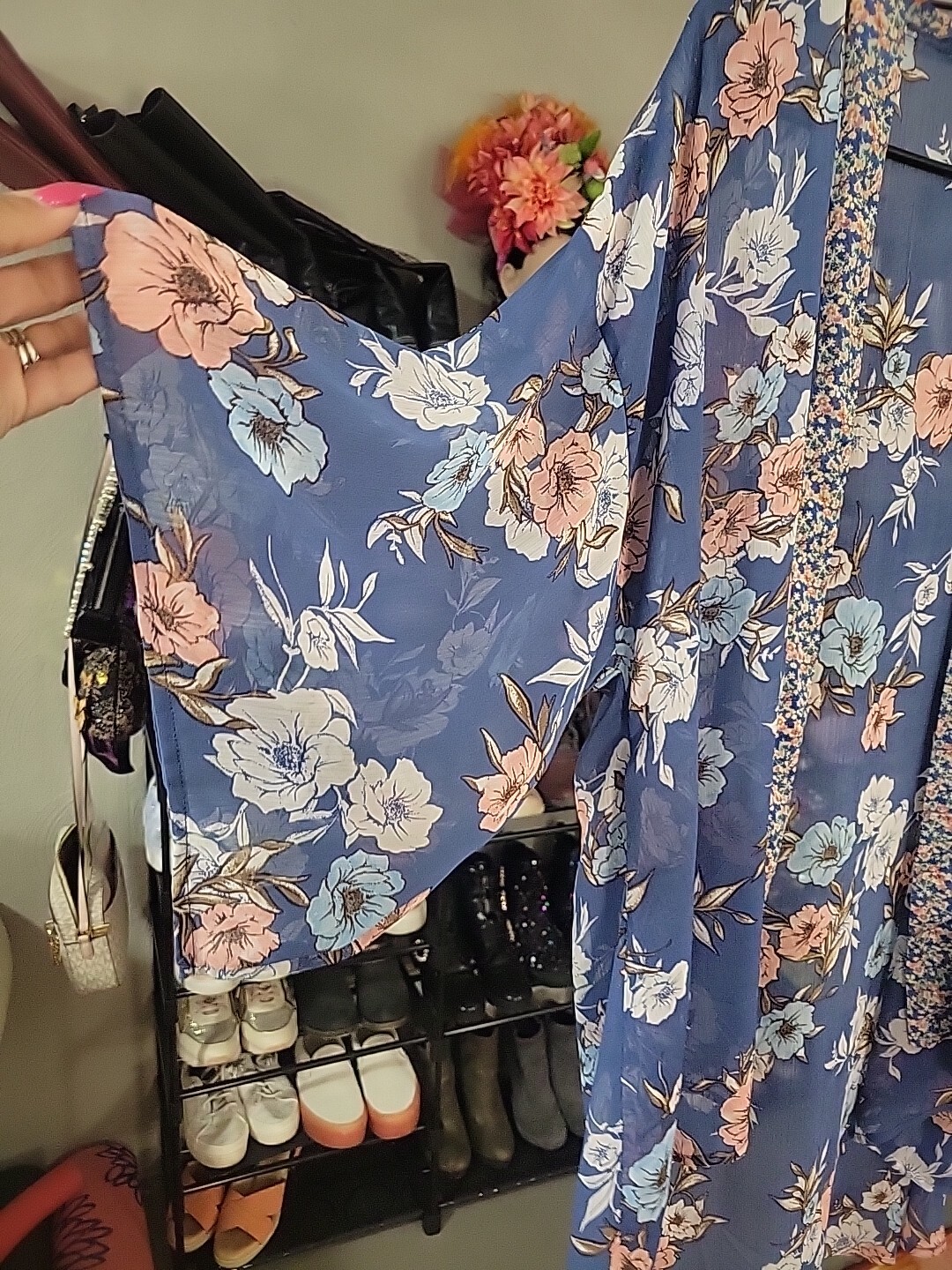 Band Of Gypsies Women's Floral Open Front Kimono Cardigan Light Blue XS/S