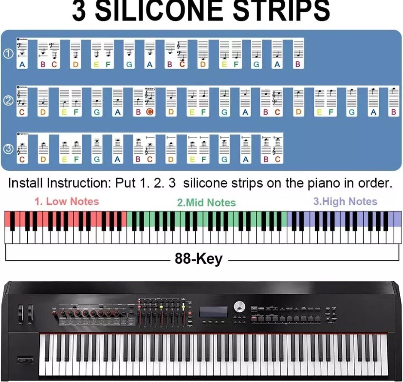 как выглядит Piano Keyboard Note Removable Labels Reusable Silicone Piano Stickers 88 Keys фото