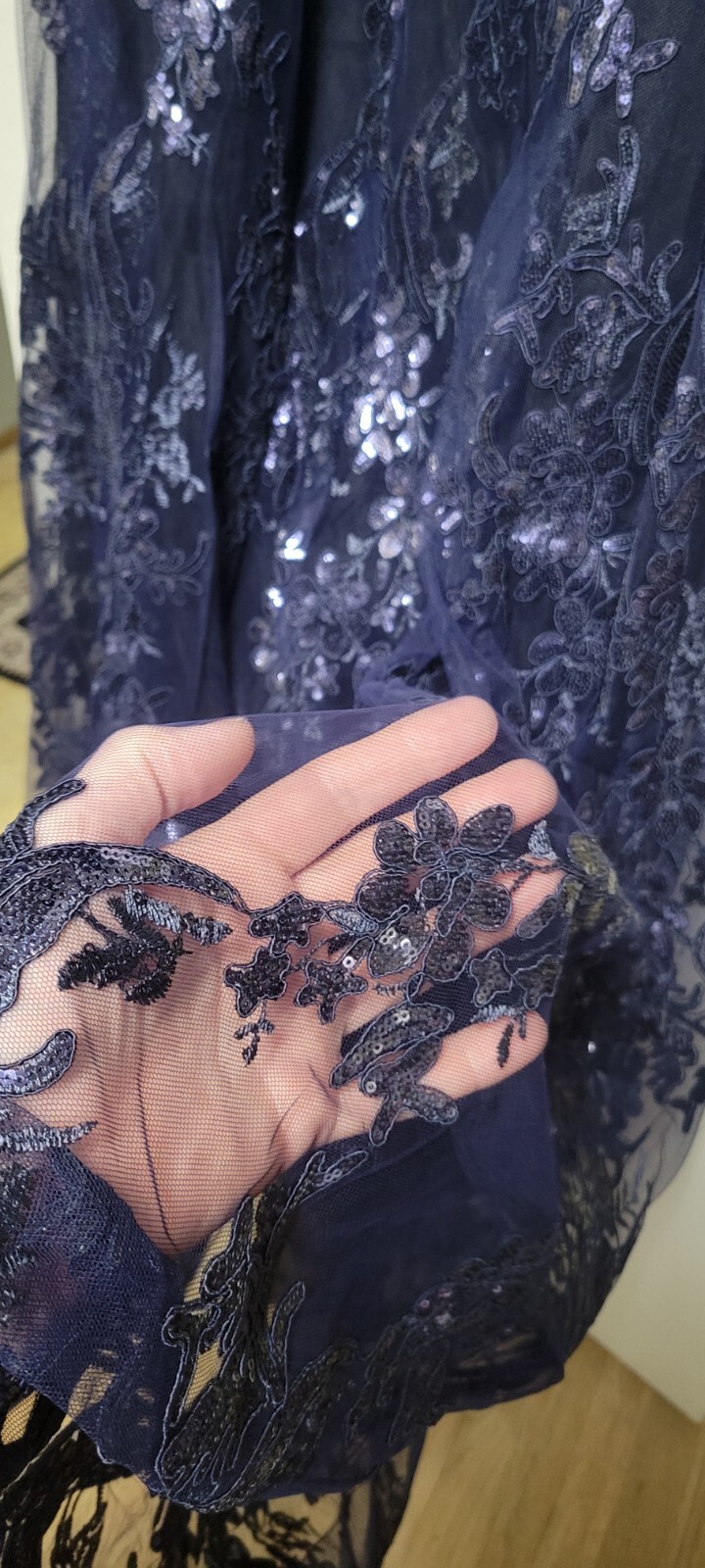 как выглядит Mother Of Bride Dress - Navy Blue, Floor Length, 3/4 sleeves, Lacey, Size 16 фото