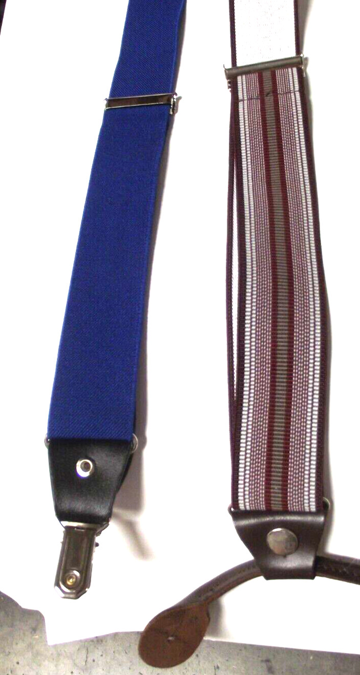 6 PreOwned Cloth Suspenders For Men: 2 Striped 1 Polka Dot Yellow Black Blue D