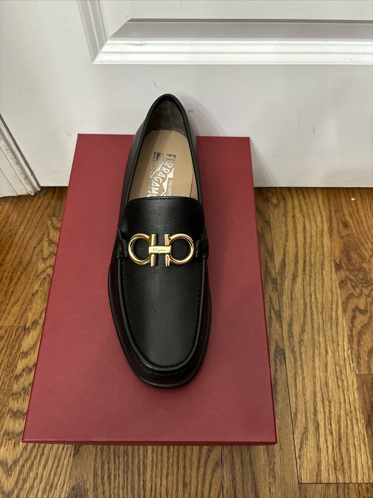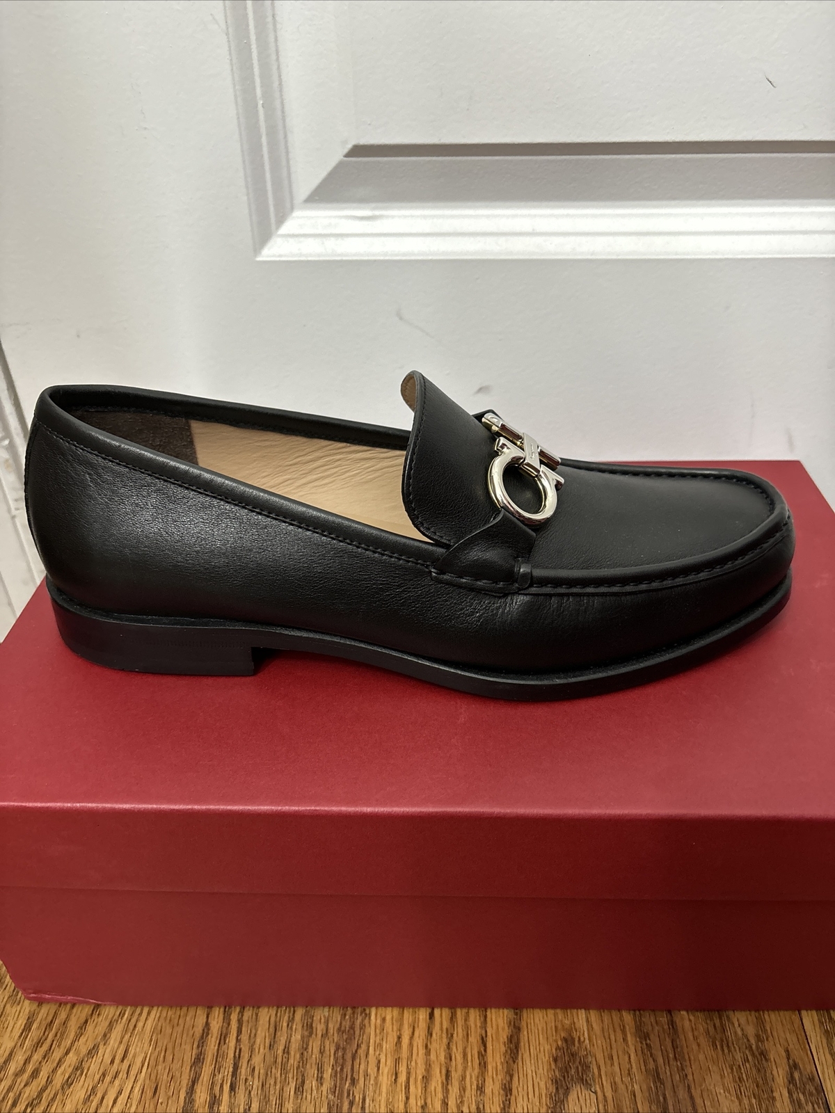 как выглядит New Salvatore Ferragamo ROLO Black Leather Mens Loafers 7 EE Reversible Buckle фото