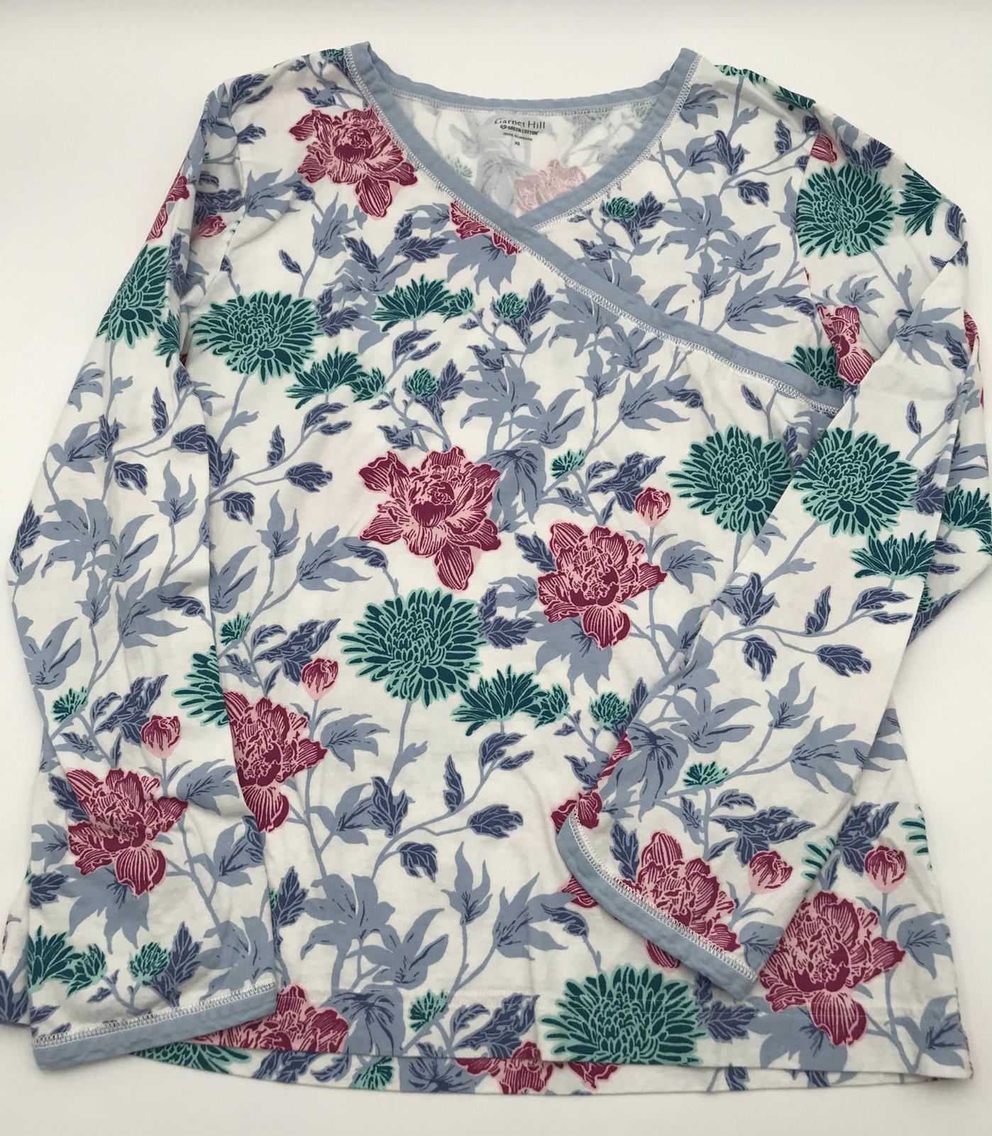 как выглядит Garnet Hill Womens XS Pajama Set Asian Wrap Floral 100 Cotton Loungewear фото
