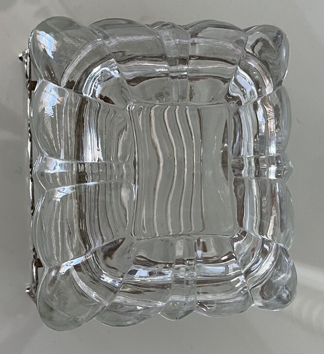 как выглядит VTG FILAGREE FOOTED JEWELRY VANITY TRINKET BOX GLASS WITH LID фото