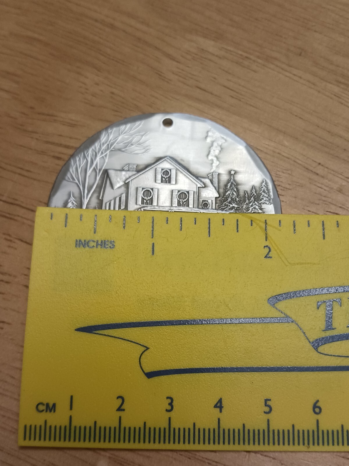 как выглядит WENDELL AUGUST FORGE CHRISTMAS ORNAMENT, 2005, HOUSE SCENE, ALUMINUM, NOS фото