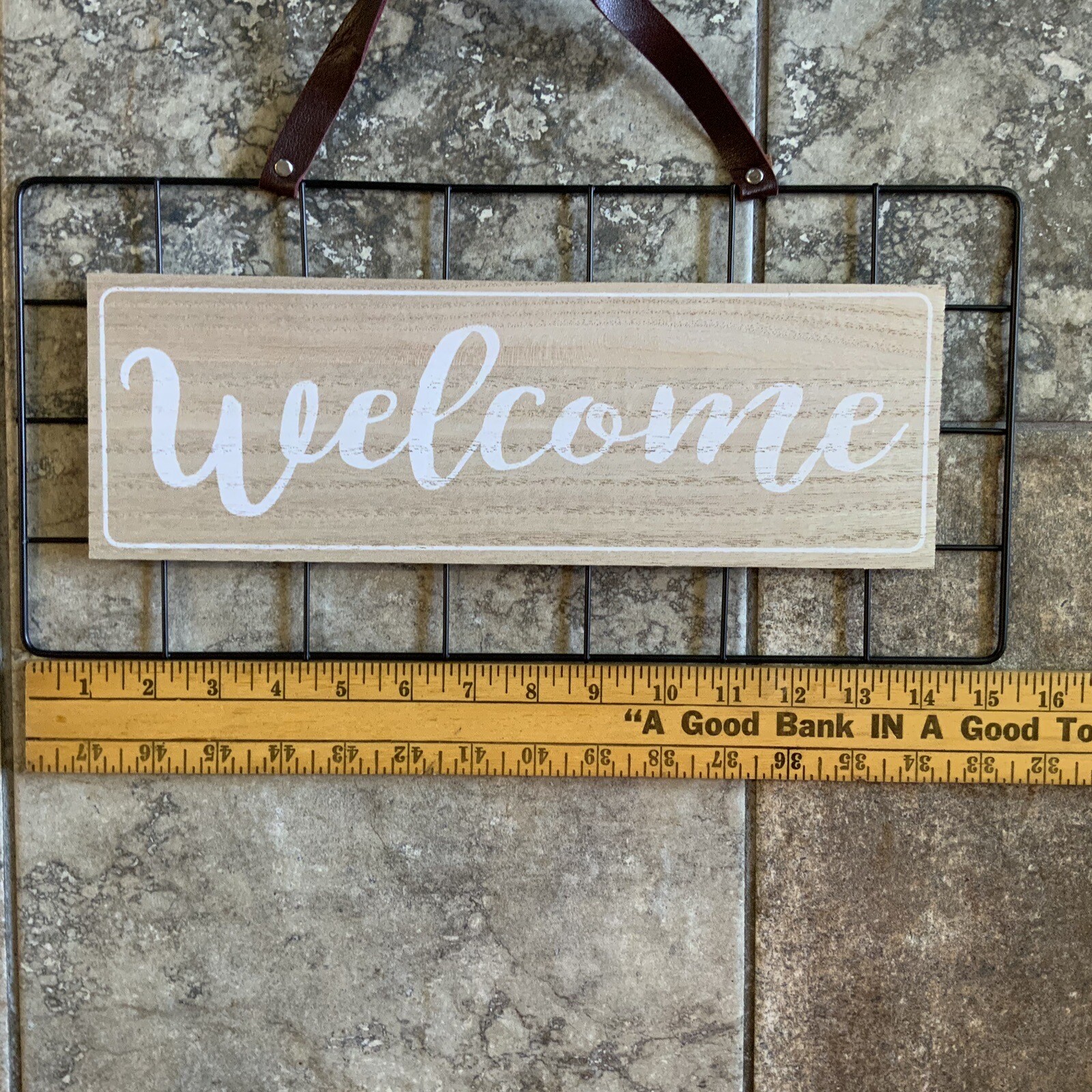 Hanging Welcome Sign Wood Metal Grid Country Farmhouse Wall Door Decor