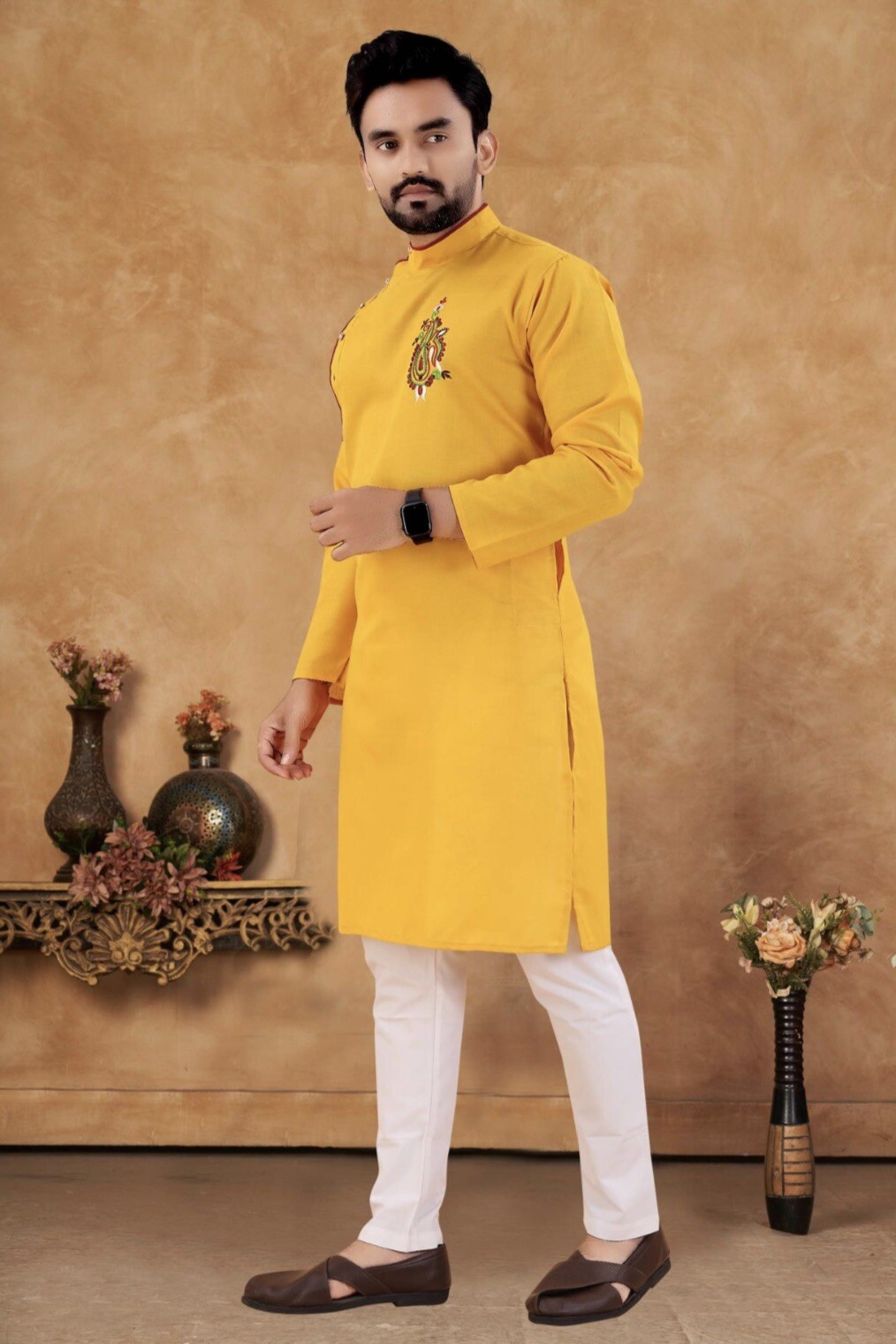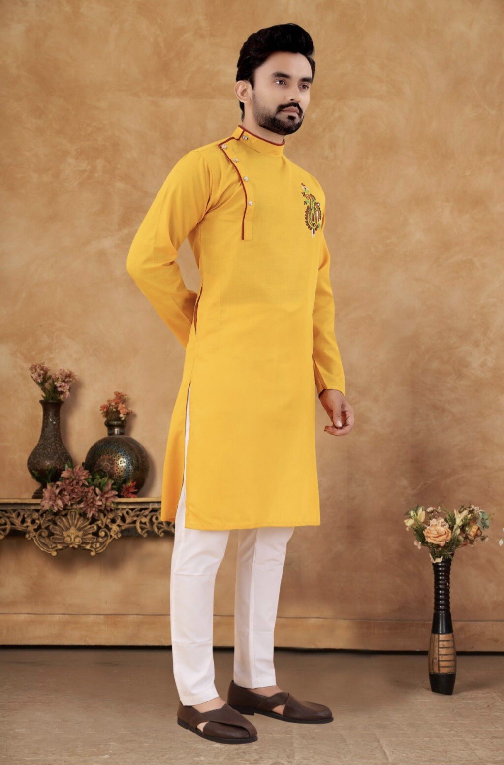 как выглядит Wedding Ethnic Bollywood Cotton Kurta Payjama Set For Men