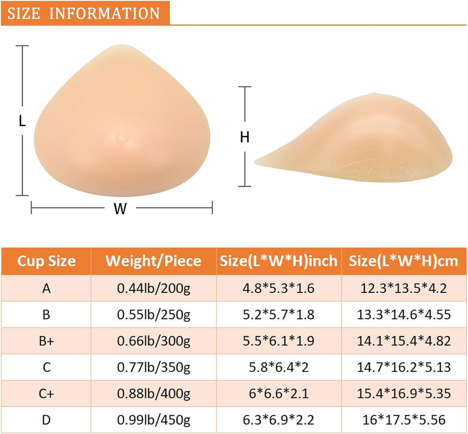 Silicone Breast Form Triangle Mastectomy Prosthesis Concave 250g/Piece B