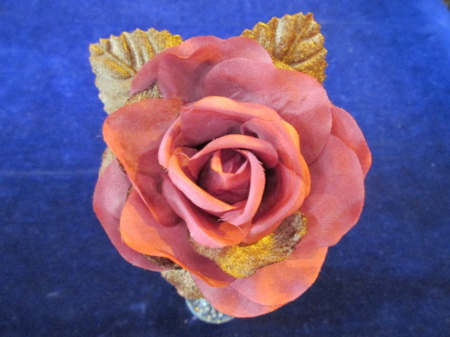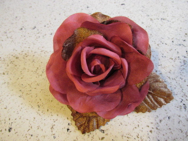 как выглядит 6pc Millinery Flower Rose Pink Cinnamon Brown 3 1/2 w/2 velvet leaves G89a фото
