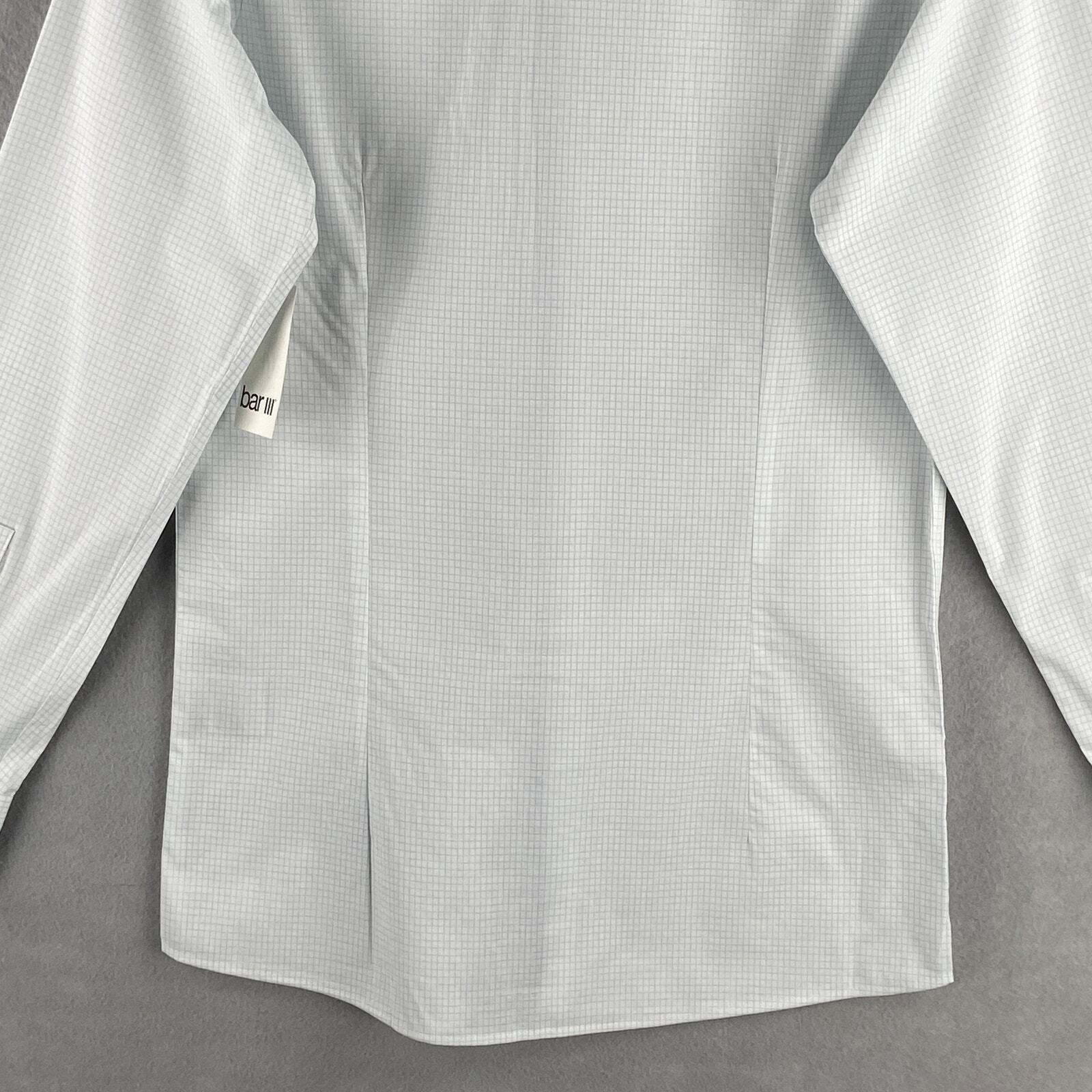 Bar III Men's Small 14-14.5 Dress Shirt Slim Fit Stretch Grid Print Lt Blue NEW