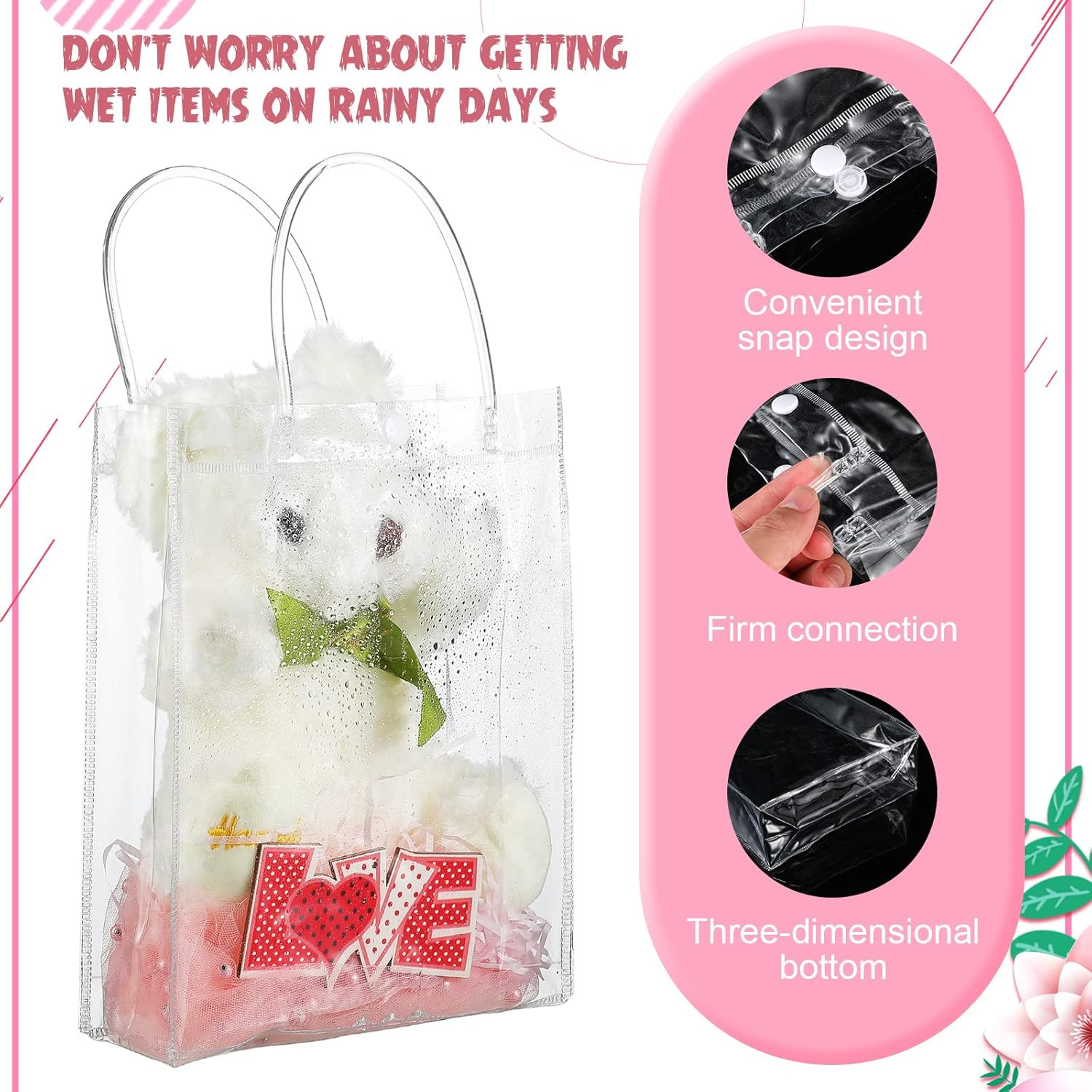 Clear PVC Gift Bags with Handles Reusable Plastic Wrap Tote Bags Transparent Sho