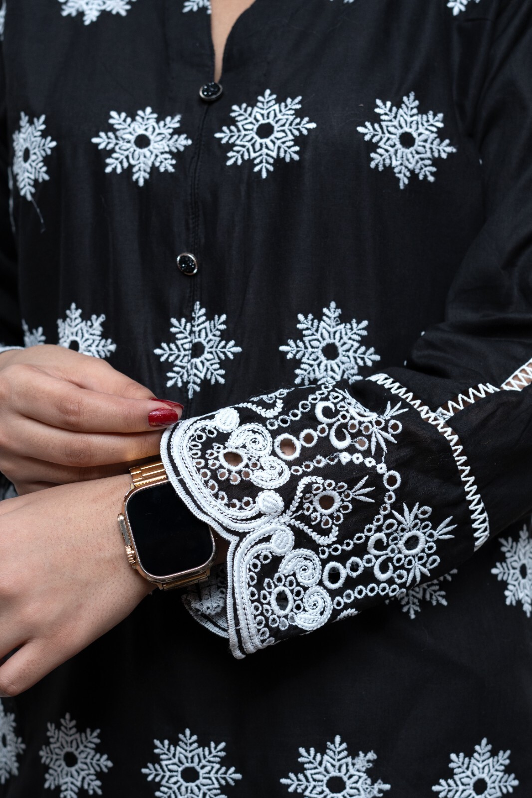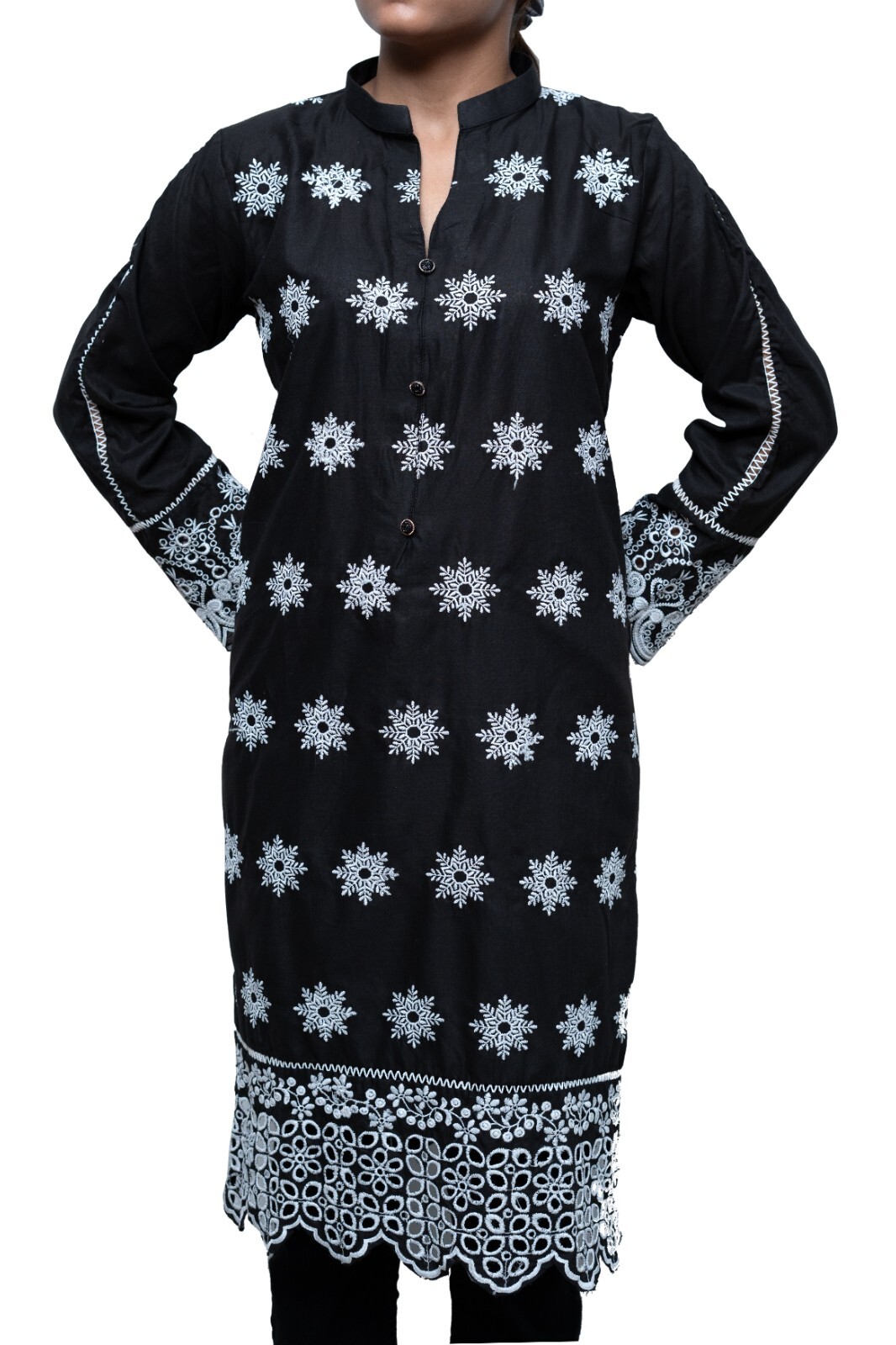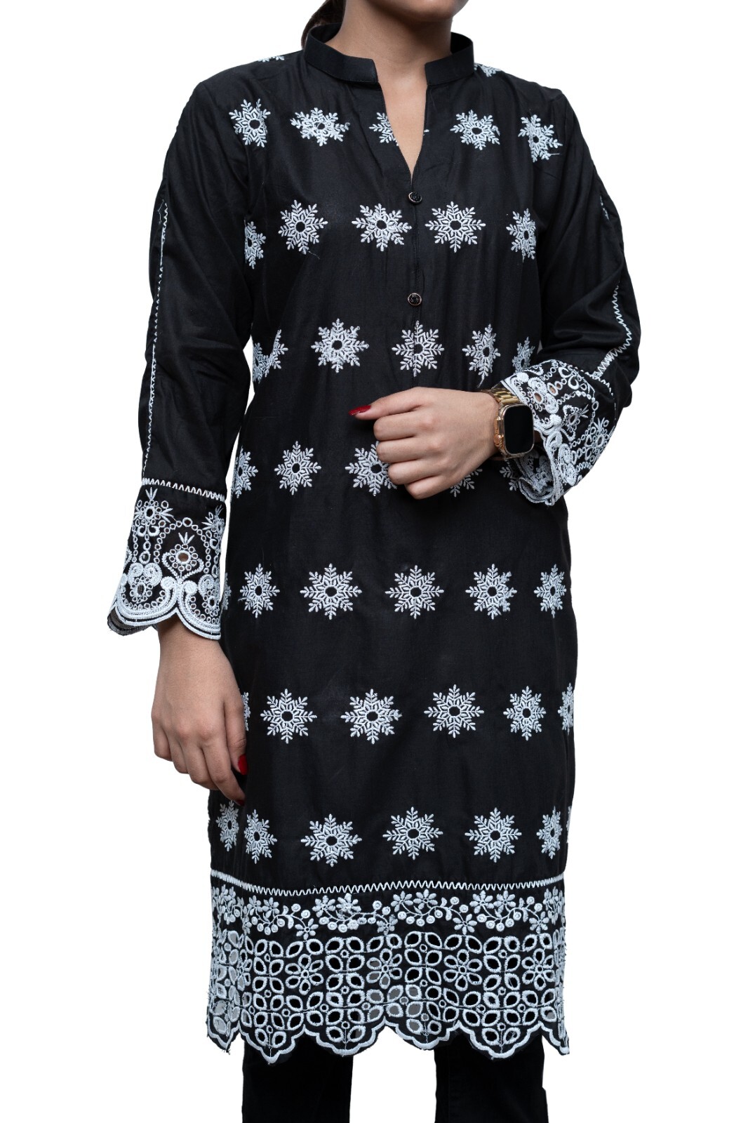 как выглядит Black Kurti with Chikankari Embroidery Size: Medium фото