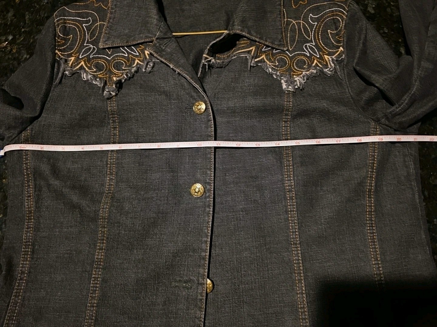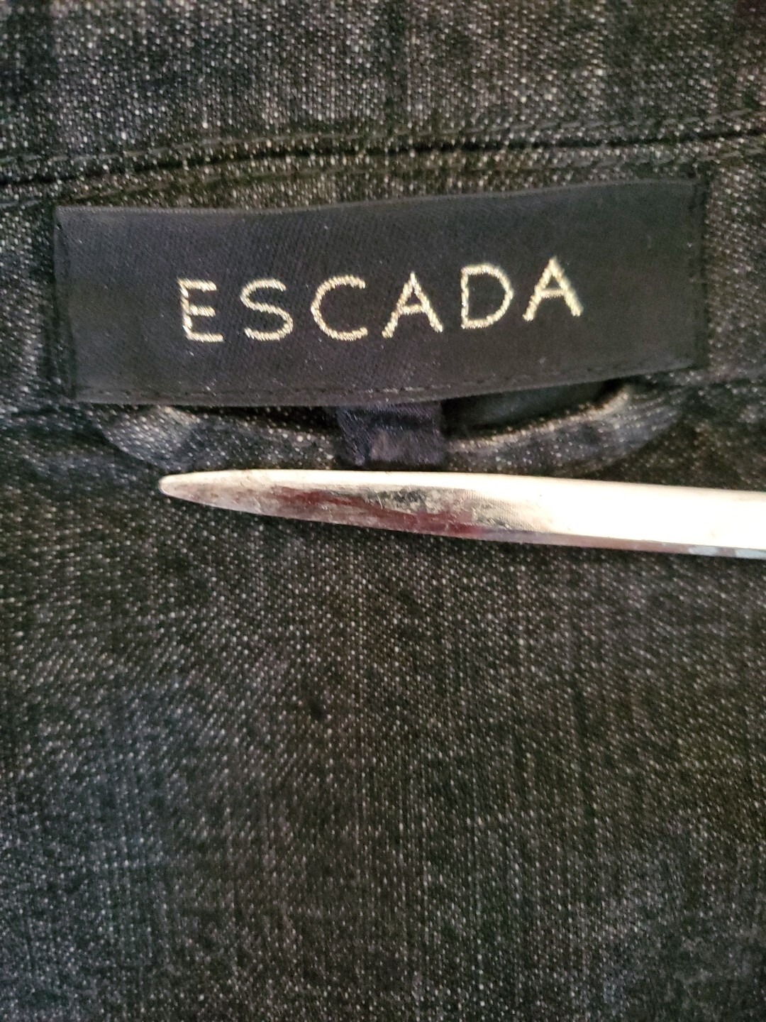как выглядит Vintage Escada Black Denim Jacket Embroidered Fringe Sz 44 Medium EUC фото