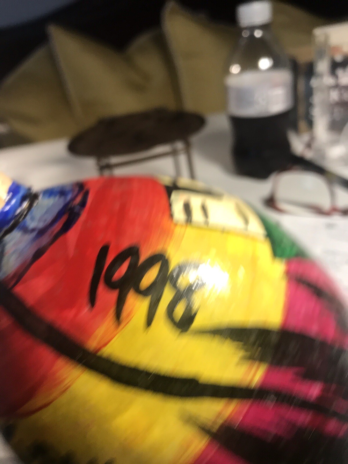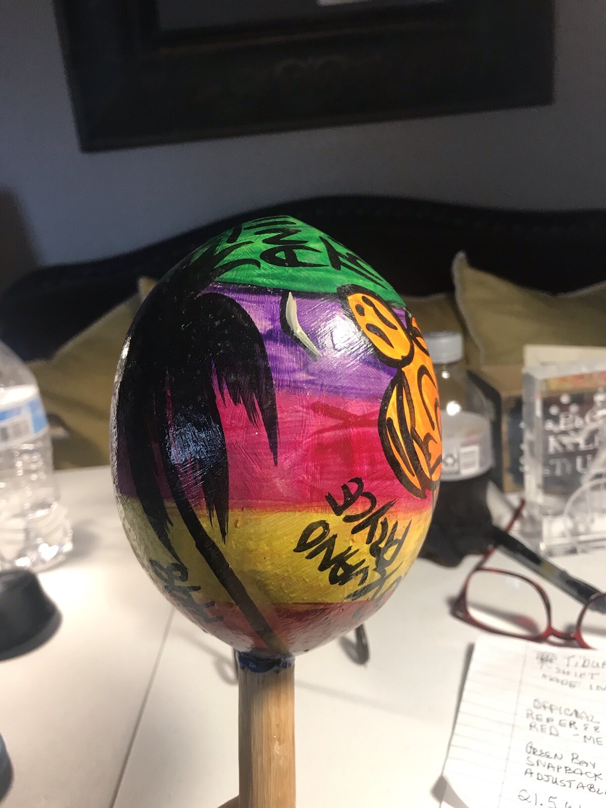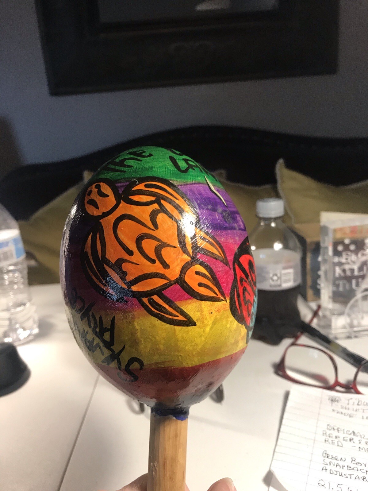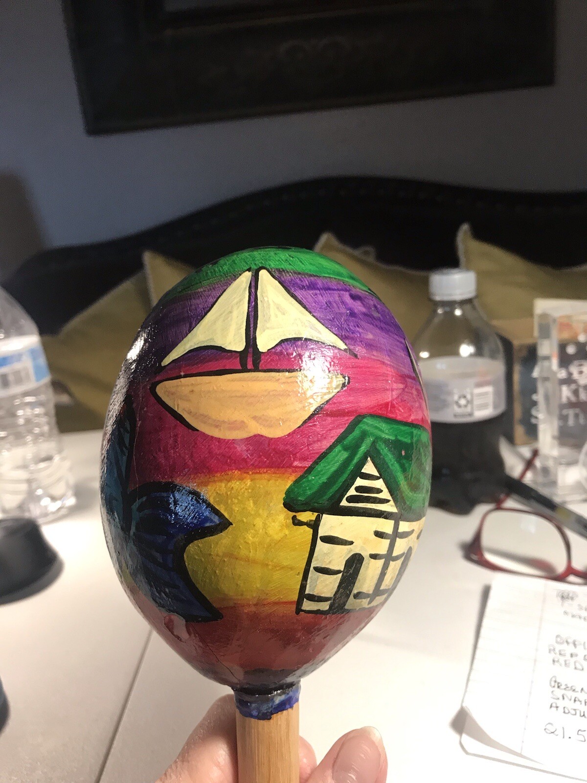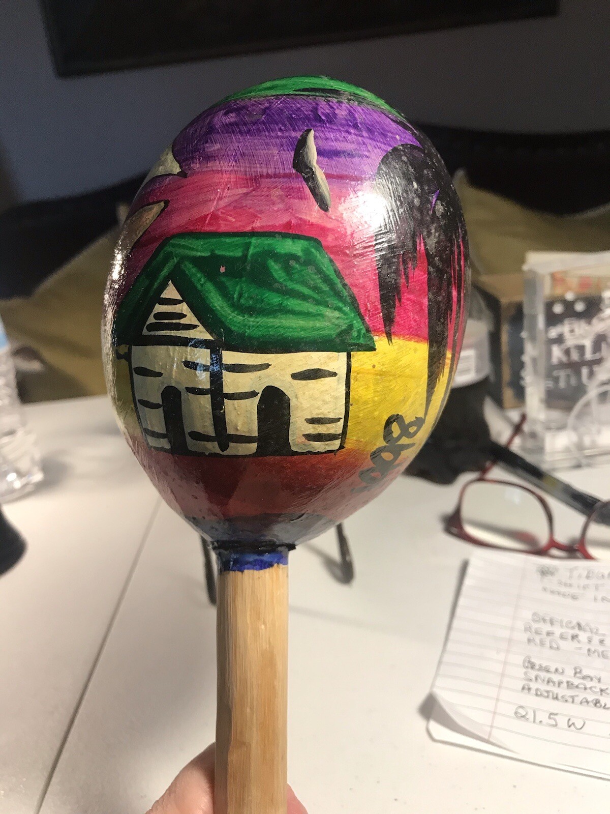 как выглядит Hand Crafted Gourd Maraca Colorfully Painted Signed 1998 фото