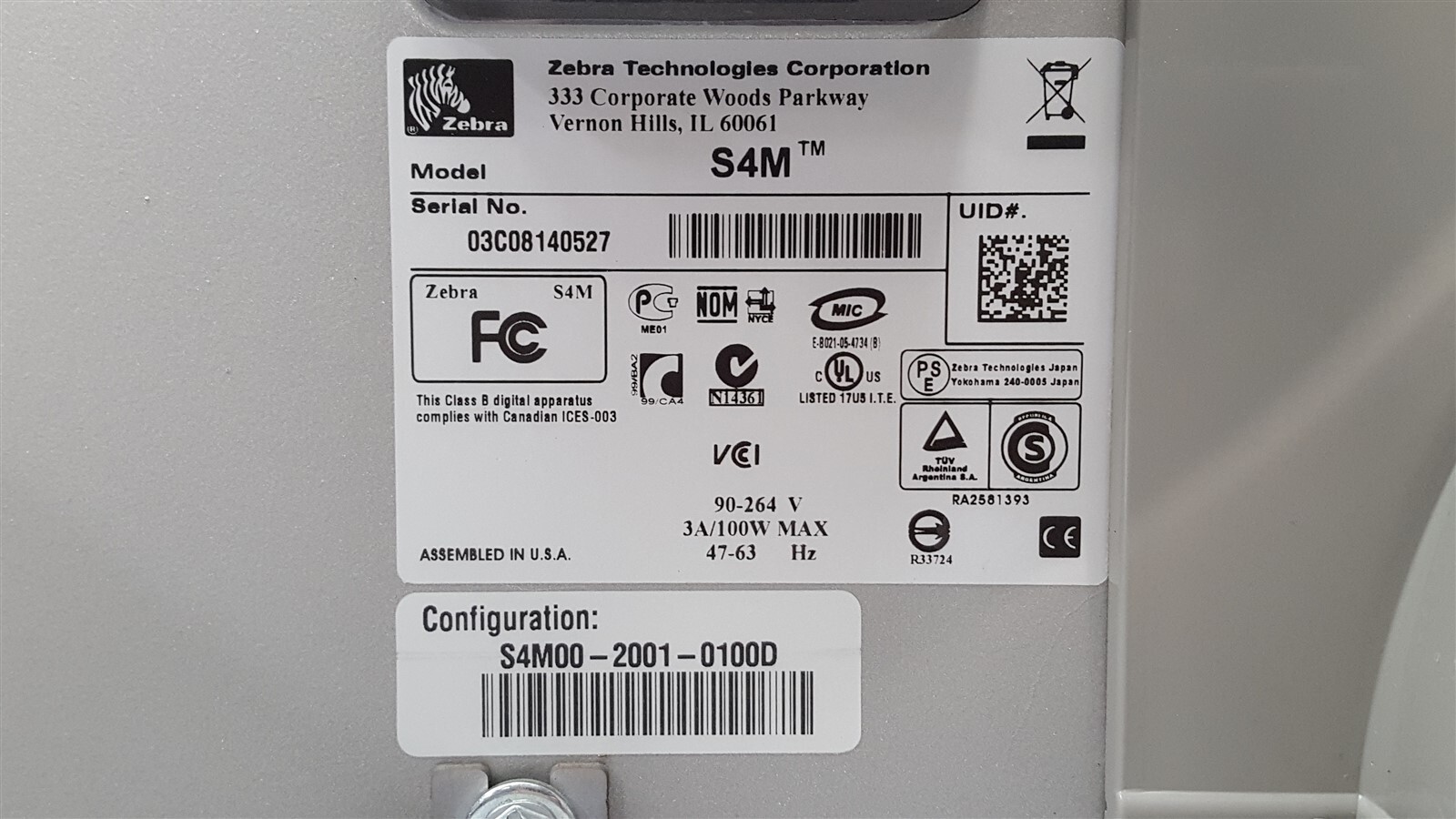 Zebra S4M 123100-131 S4M00-2001-0100D Label USB Direct Thermal Printer Parts