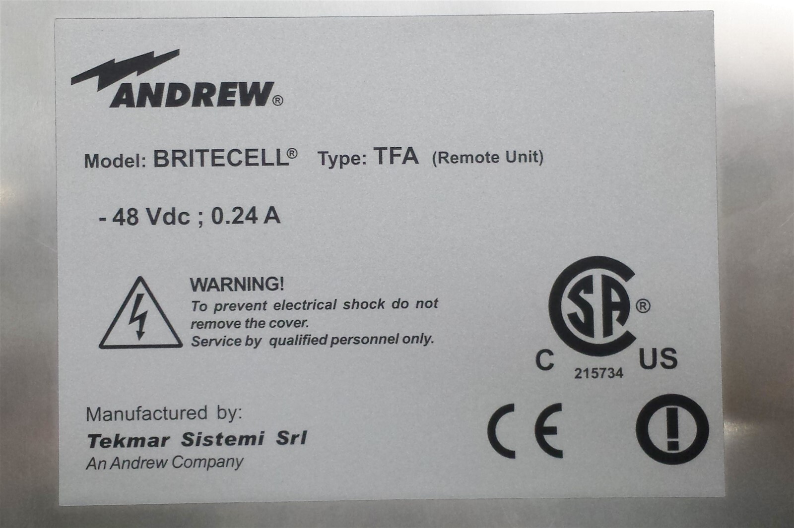 ANDREW COMMSCOPE TEKMAR BRITECELL TFA 233 I H4/3/23 REMOTE UNIT AMPS P 900123101
