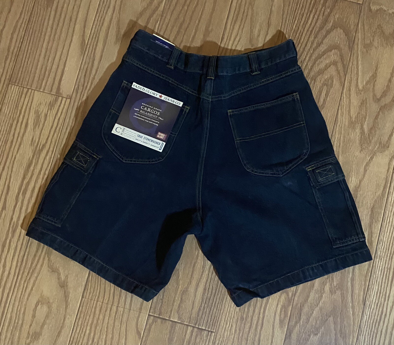 как выглядит Vintage 90s Jeans Shorts Faded Glory Cargo 36" W, 13 1/2 " Wide Leg NWT фото