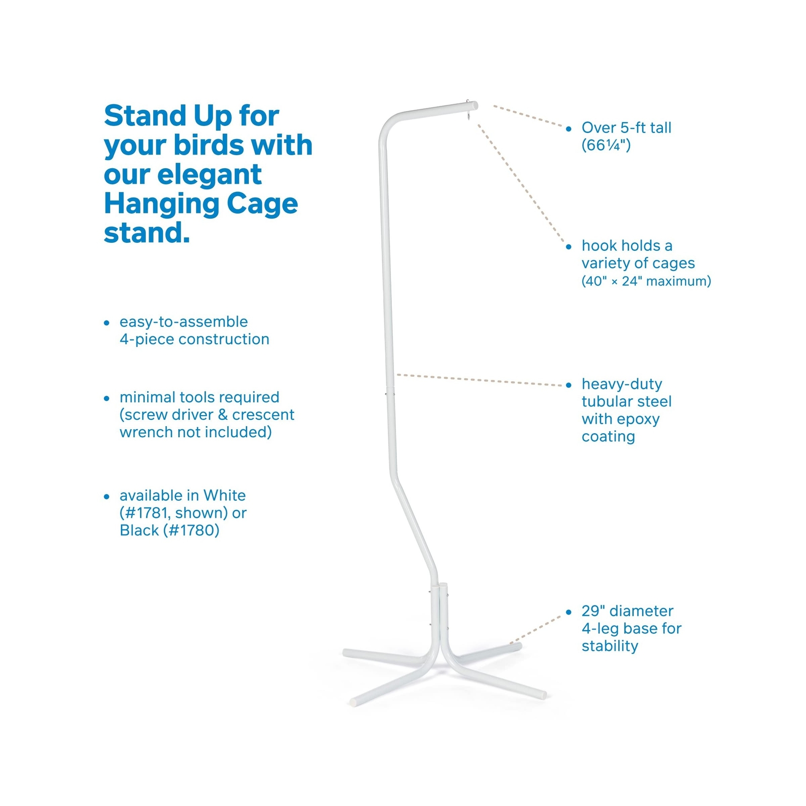 Prevue Pet Products Tubular Steel Hanging Bird Cage Stand 1781 White, 24-Inch...