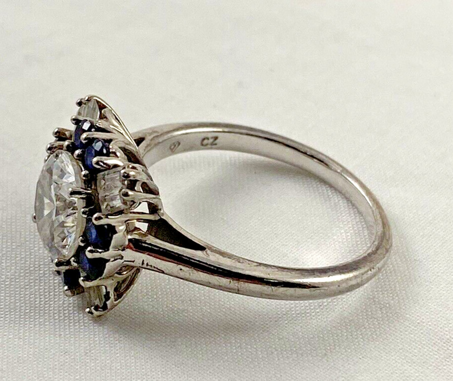 Sterling Silver Blue and Clear Cubic Zirconia Ring Size 8