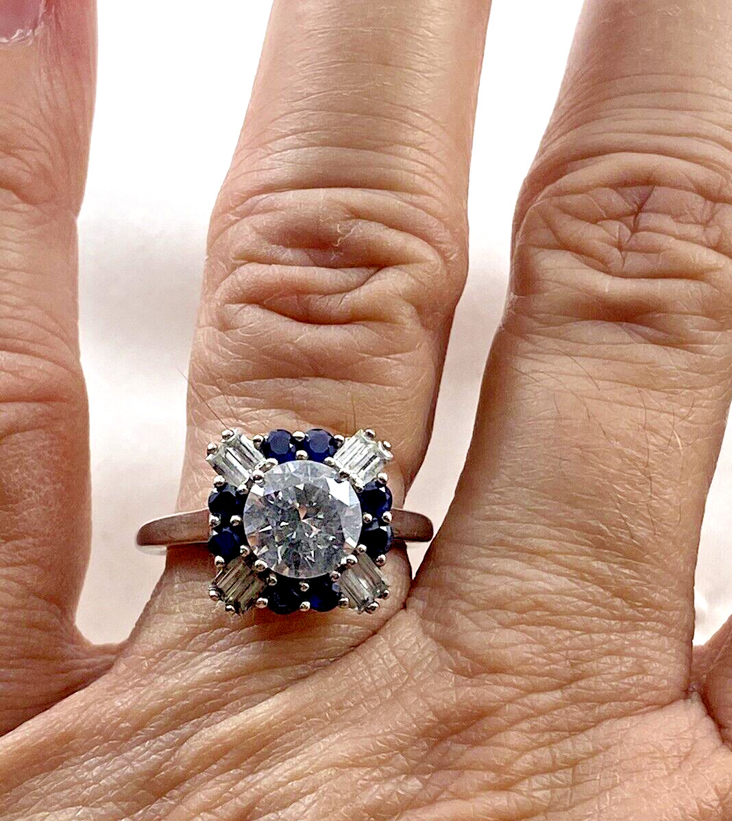 как выглядит Sterling Silver Blue and Clear Cubic Zirconia Ring Size 8 фото