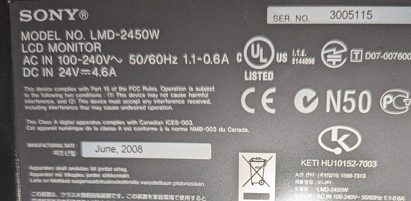 Sony LDM-2450W LCD Monitor Lightly Used