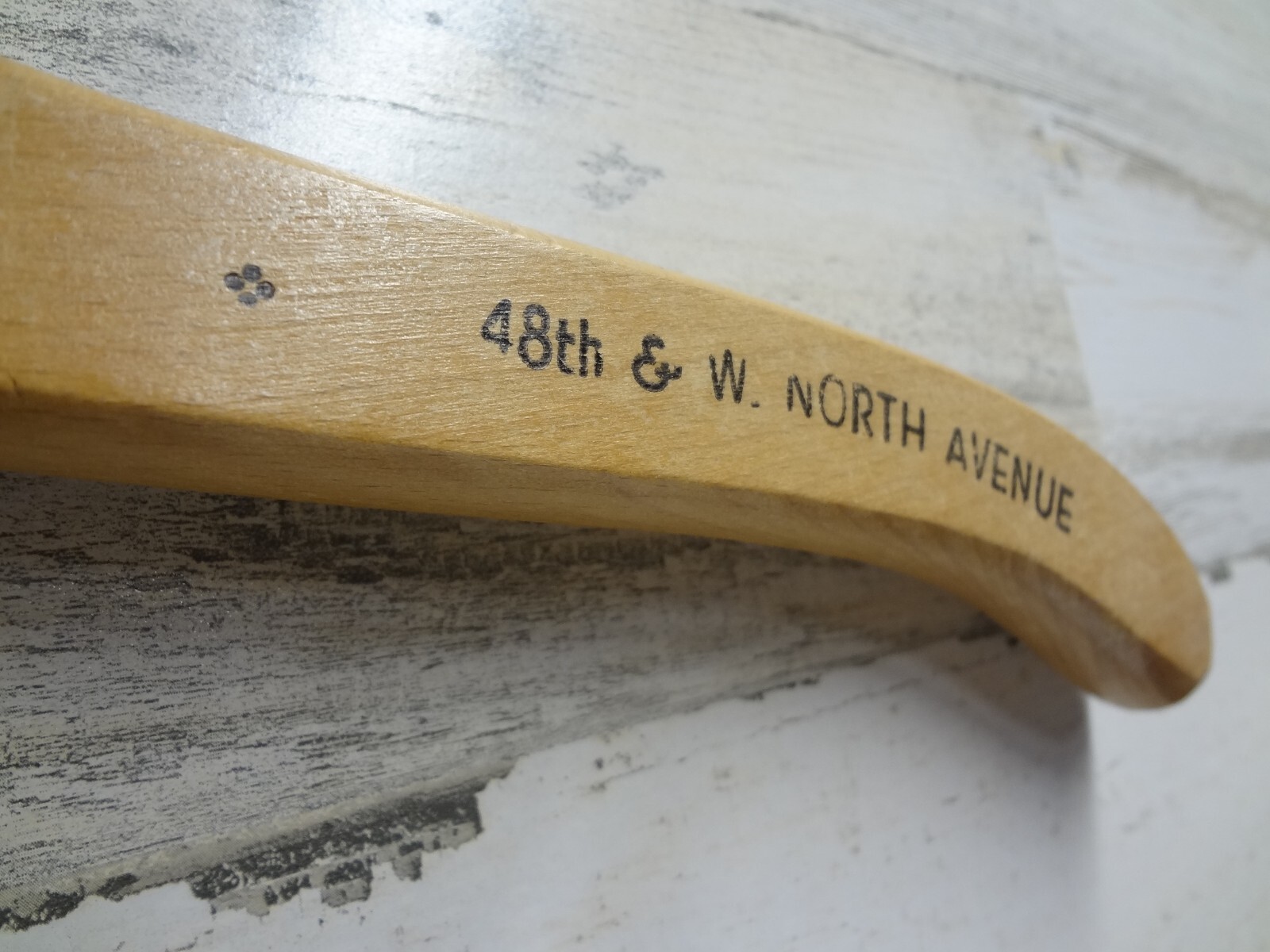 VINTAGE WOODEN HANGER - RICHARD RICH - 48TH W. NORTH AVENUE - MILWAUKEE, WI