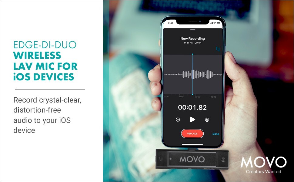 Movo EDGE-DI-DUO Wireless Lavalier Microphone System for iPhone, Lightning, iOS