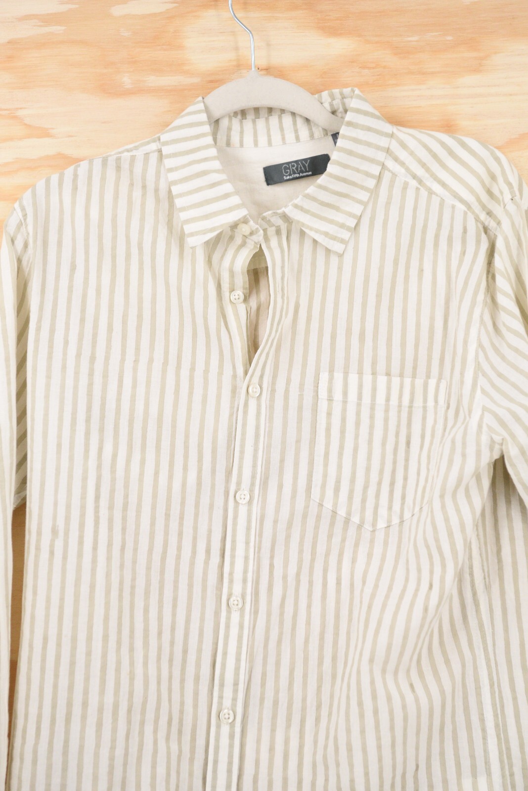 Gray Saks Fifth Avenue Stripe Lightweight Button Down Shirt Mens Medium