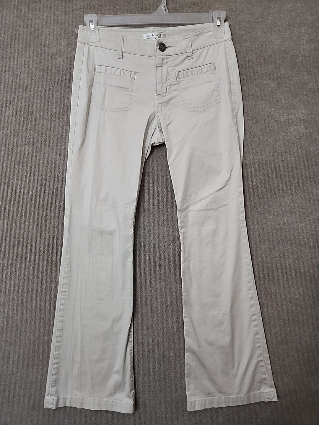 как выглядит CAbi Sandy Trouser Dress Pants Womens 2 Light Beige Flared Leg Cotton Stretch фото